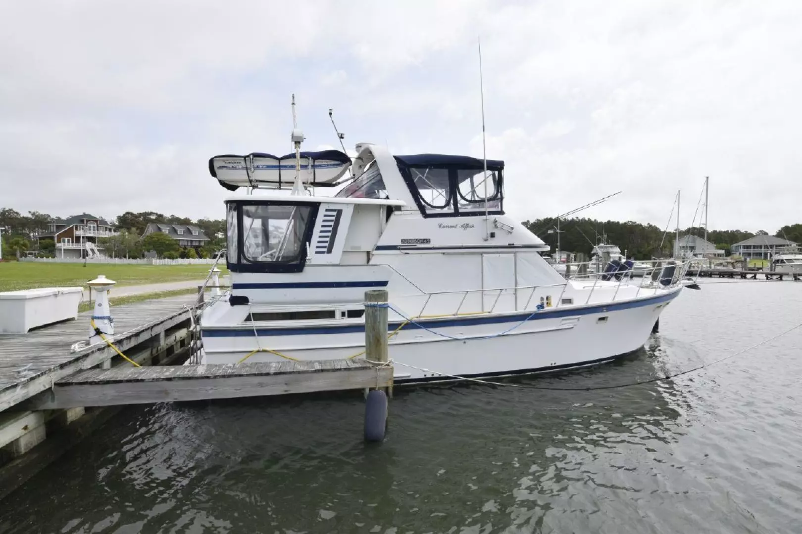 The Jefferson 42 was built on the same hull as the Jefferson 42 Convertible and is a fairly straight forward double cabin motor yacht.