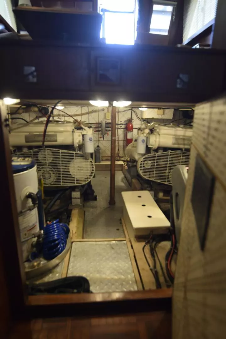 She is powered by twin Caterpillar 3208's 260hp diesel engines which allows a nice cruise of 15 knots.