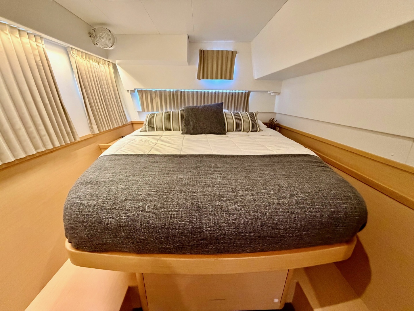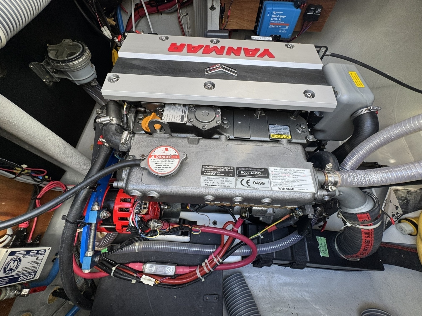 Nomad is an immaculate 2020 Lagoon 42 Owner’s Version that has never been chartered and has been meticulously upgraded into a truly world-capable, off-grid bluewater catamaran. Designed for comfort, safety, and complete energy independence, she features the sought-after three-cabin, three-head layout and is powered by twin upgraded Yanmar 57 hp engines with Flex-Fold props, delivering smooth and efficient performance under power. Factory options include a square-top mainsail, self-tacking jib, and a 13.5 kW Onan generator complemented by a comprehensive Victron Energy electrical suite—three 5 kW Quattro inverter/chargers, six 330 Ah LiFePO₄ batteries, and 2.7 kW of bifacial solar. Together, these systems enable silent, sustainable cruising without dependence on shore power. Comfort aboard is exceptional, with four Dometic air-conditioning zones, upgraded Corian counters, full-size refrigeration, and professional ceramic tinting and Phifertex wraps that dramatically reduce cabin heat and UV exposure.