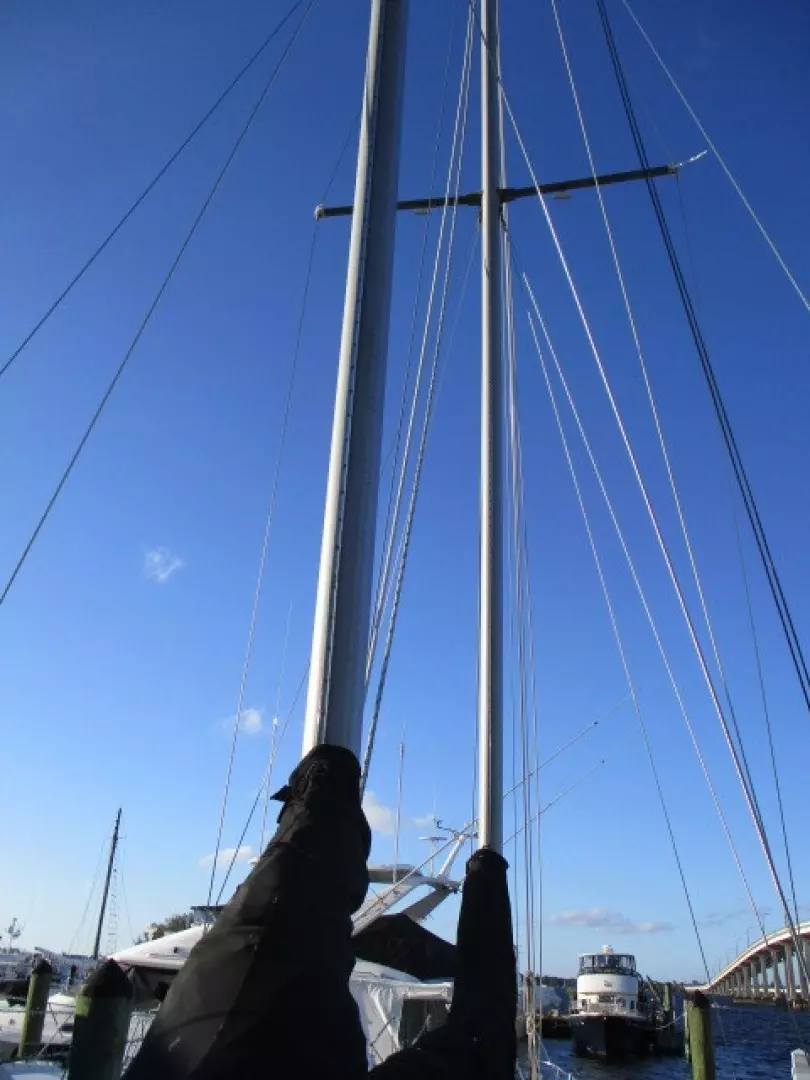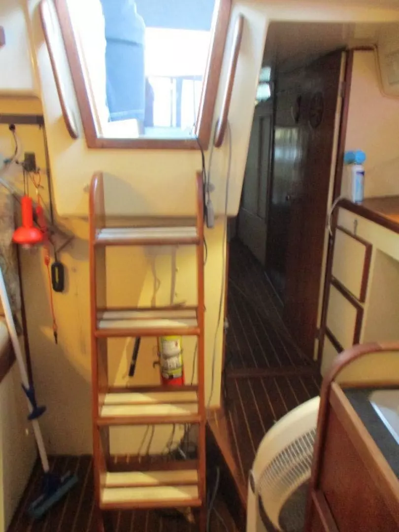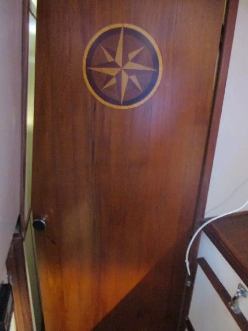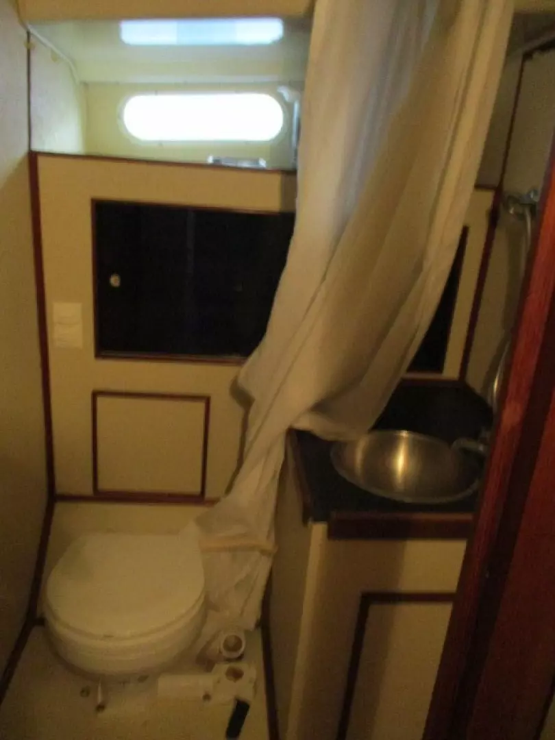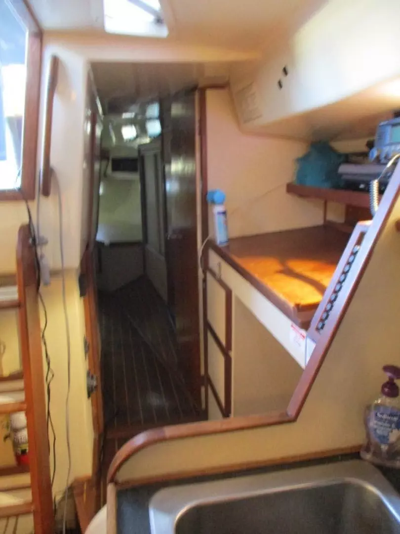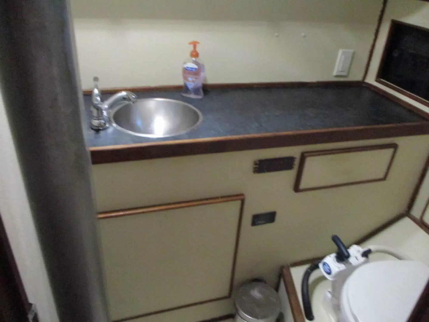 Sea Dancer has 2 private berths and the main salon settee. The aft master cabin has a new queen mattress with private shower. There is a hanging locker with storage drawers. Reading lights and a new overhead hatch with aft portals allow for plenty of light.
