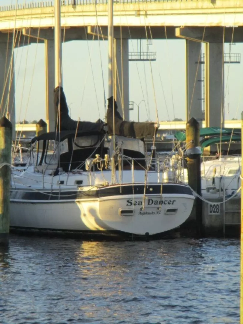 Classic Morgan 41' ft Out Island Ketch rig in good condition. This very popular blue water cruiser with shallow draft is ready to take you to the Bahamas or any point south! This center cockpit cruiser has separate exterior access to both forward and aft accomodations and interior access to both. Beautiful teak and holly sole makes for a warm and inviting main salon area bosting a u-shape settee to starboard and galley,chart station and Norcold refrigerator to port. The center cockpit is protected with a Black bimini top and isinglass forward. All sails are protected with black sunbrella covers. The main salon has a large drop in 13000 BTU air conditioner.Sea Dancer has 120% new roller furler jib,150%Genoa like new,storm sail. The main is in fair condiiton and the mizzen in good.