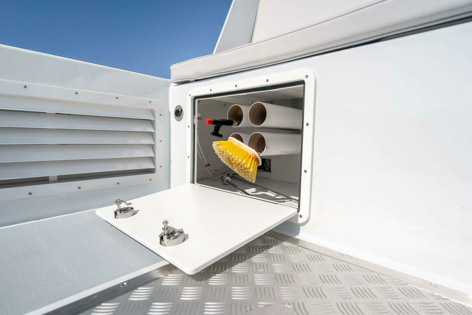 - Large Insulated centerline fish hold with ice dump and freezer plates 4' x 4.5' x 8.5'