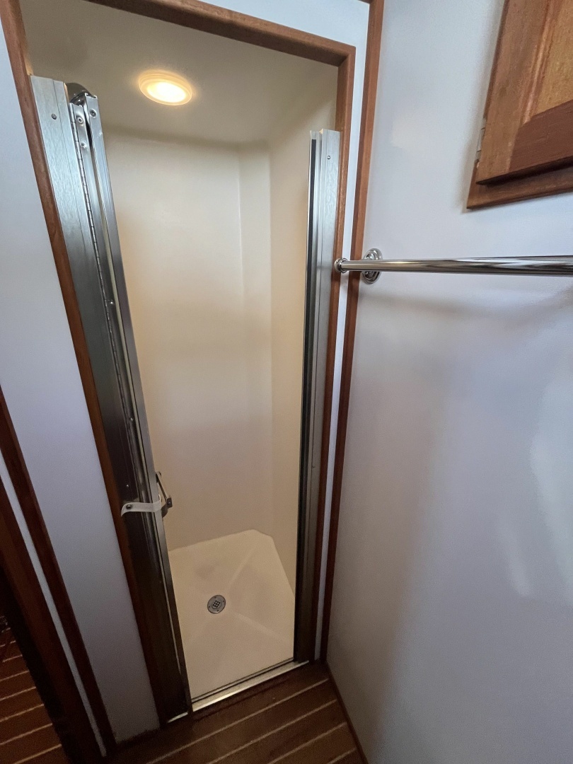- Spacious walk-around queen stateroom with private head and enclosed shower