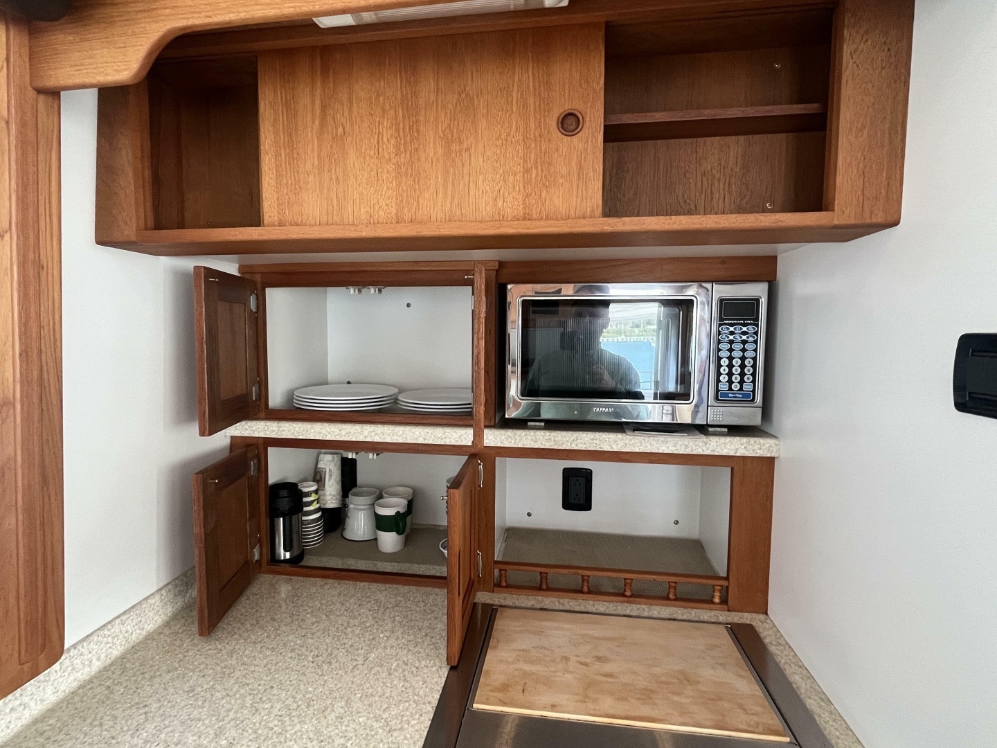 - Port and starboard glove boxes, aft cabinet and helm storage