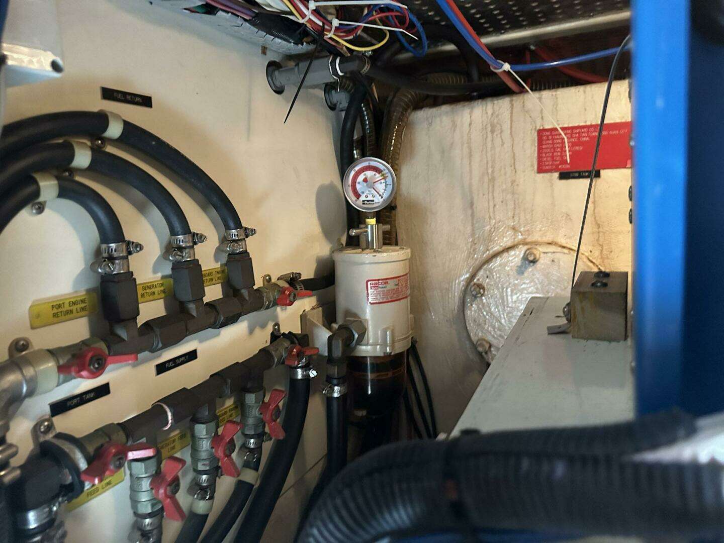 - Dual Racor fuel filters with pressure gauges