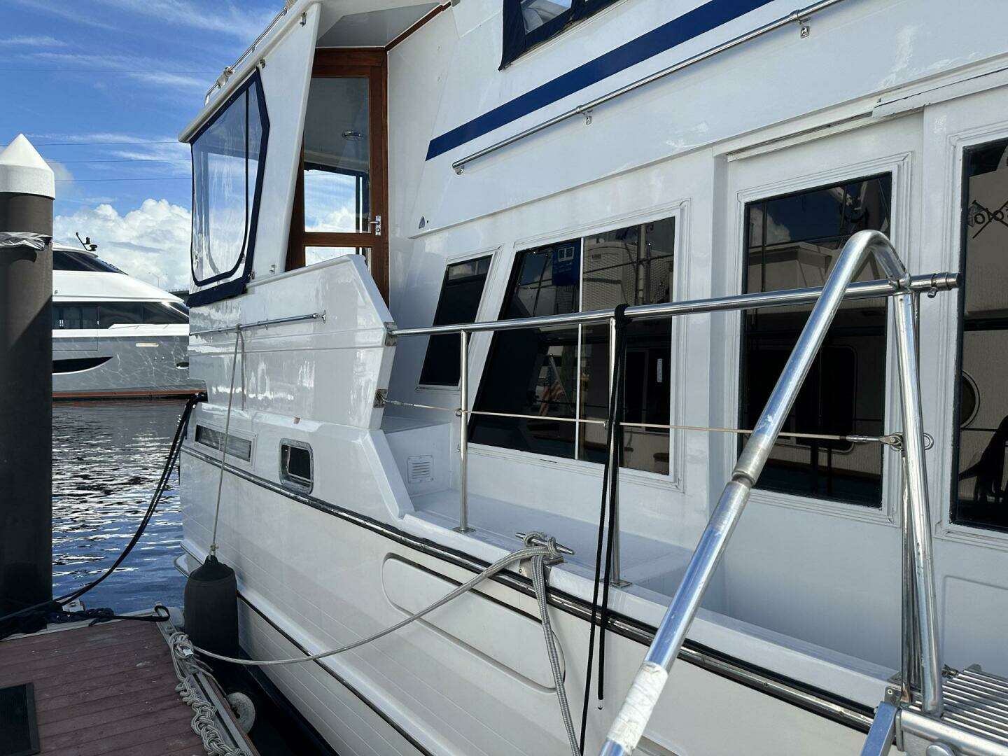 - Molded fiberglass stairs to flybridge