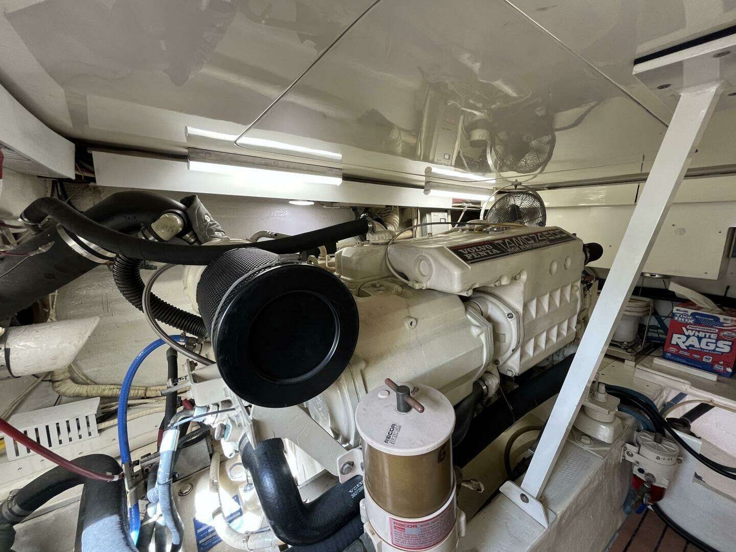 - Mechanical: Racor filtration/turbine fuel polishing, Hynautic hydraulic steering, Jabsco electric water pumps, Sea Fire system, battery charger, engine room fans
