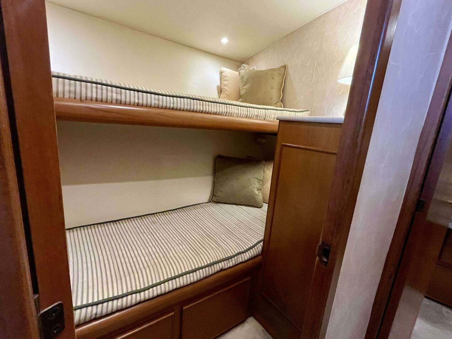 - Guest stateroom — over/under bunks, storage & cedar- lined hanging locker