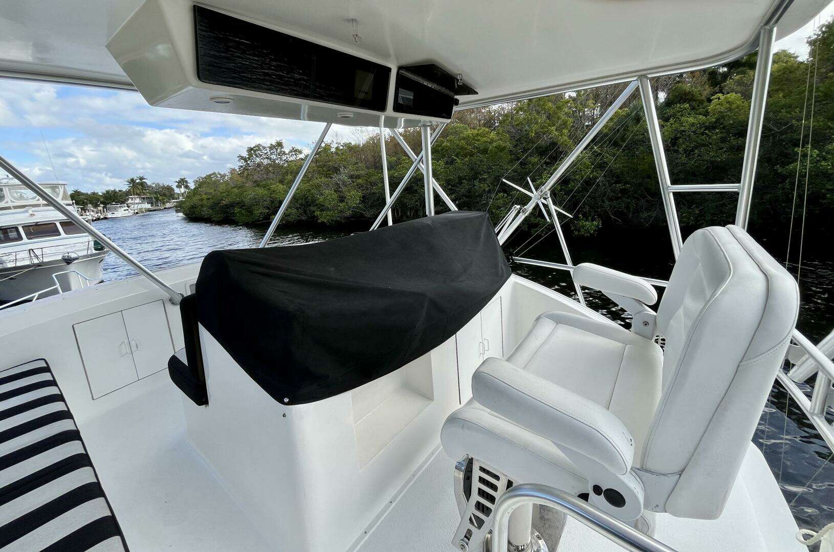 - Flybridge: Hardtop with three-sided isinglass enclosure — excellent visibility & protection
