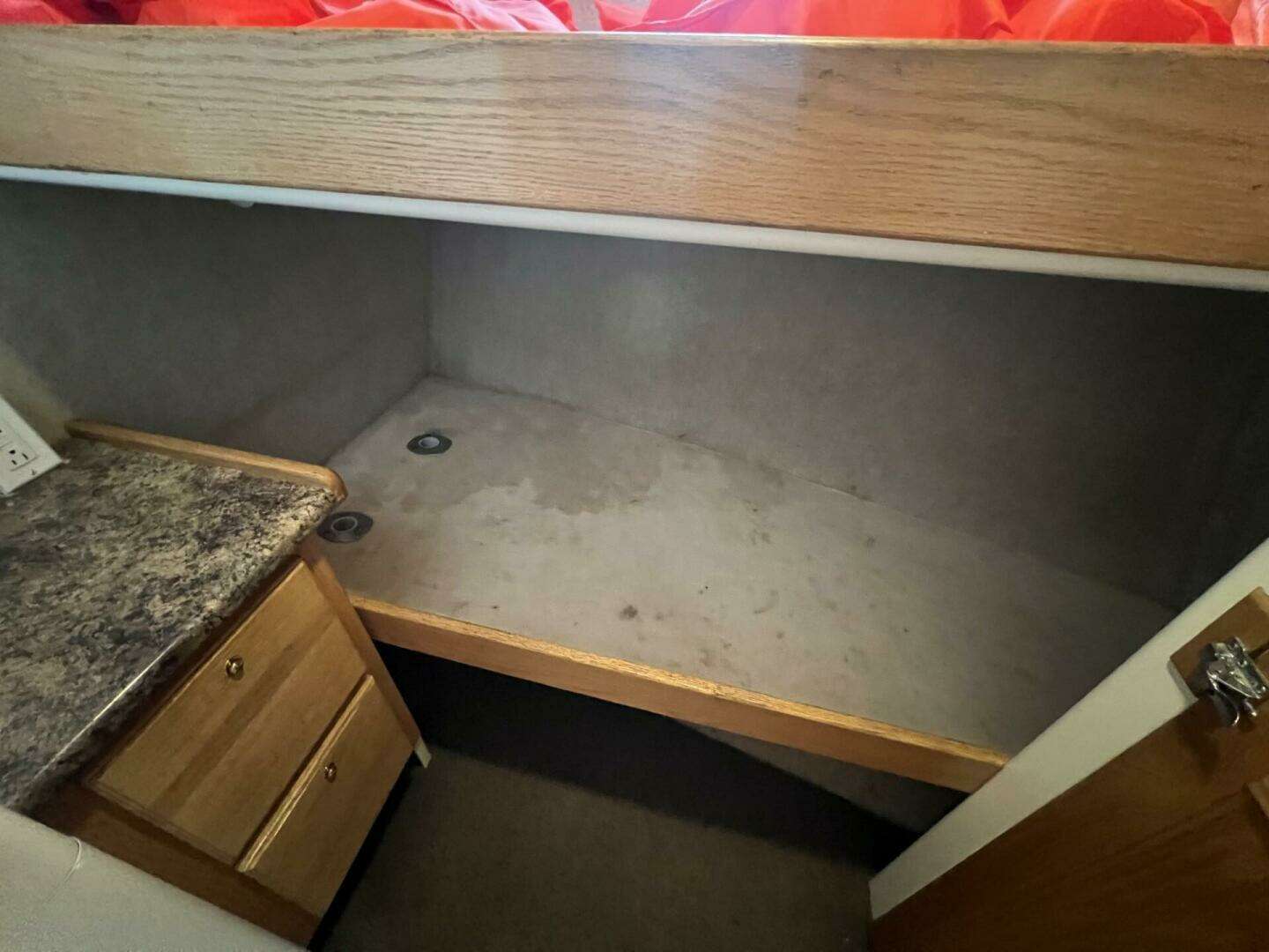 - Ample Cabinet Storage - Access under helm