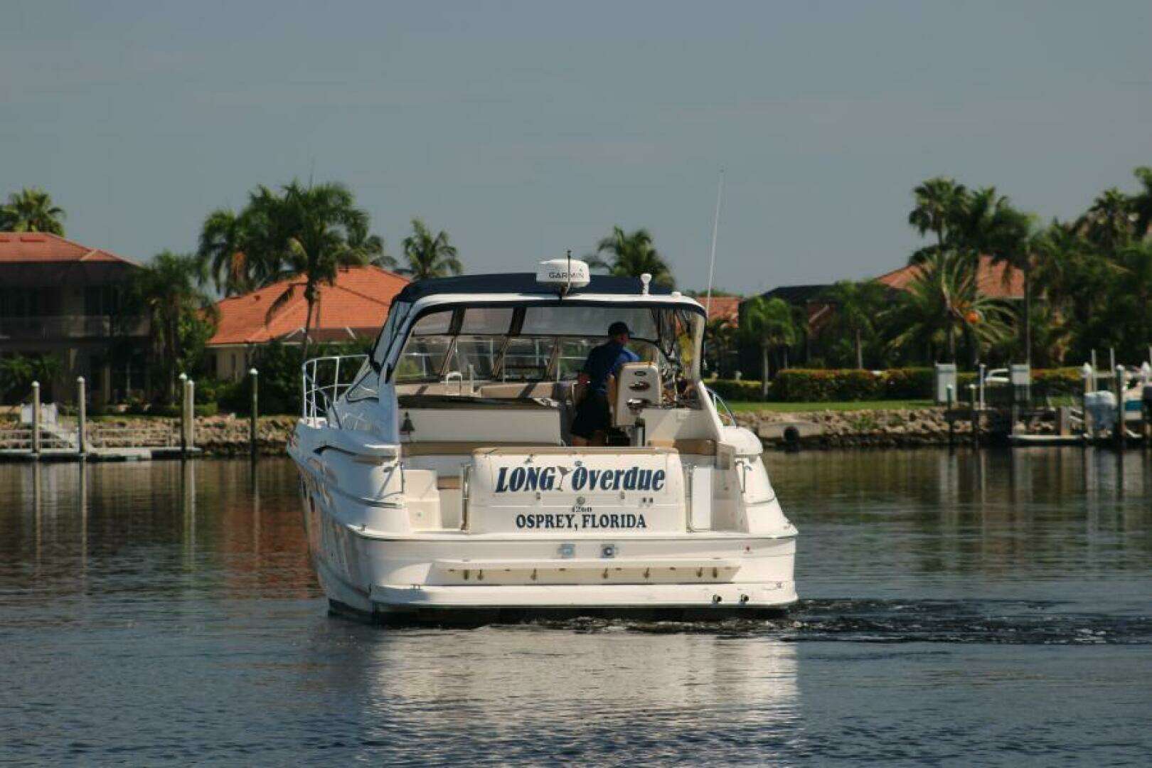 With 2-staterooms, 2-heads and a spacious salon and galley LONG OVERDUE is powered by twin Volvo inboard engines, each delivering an impressive 480 horsepower, the Commodore 4260 achieves a cruising speed of 28 mph and a maximum hull speed of 36 mph, making it ideal for thrilling adventures. The electric windlass adds convenience, enhancing your experience while docking or anchoring. Accommodations include two spacious cabins and two heads, providing comfort for family and friends. This boat is perfect for those seeking both relaxation and excitement on the water. The Regal Commodore 4260 is truly a remarkable choice for anyone looking to enjoy unforgettable moments at sea.