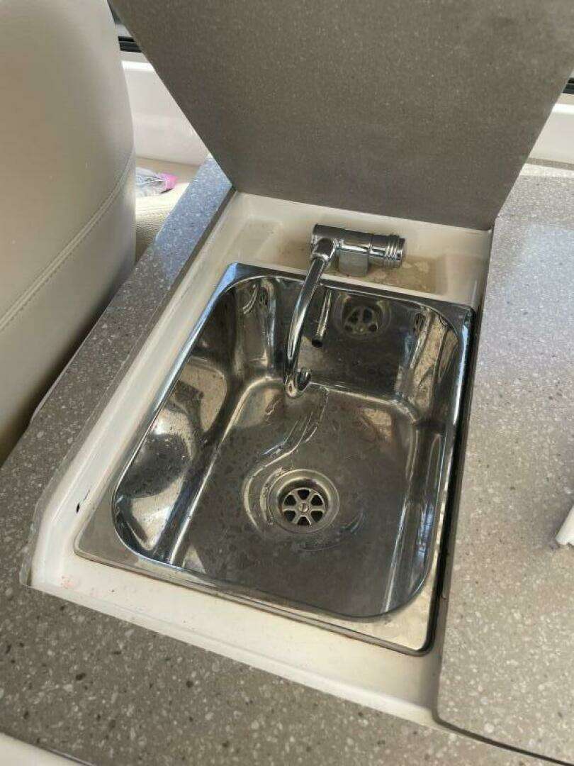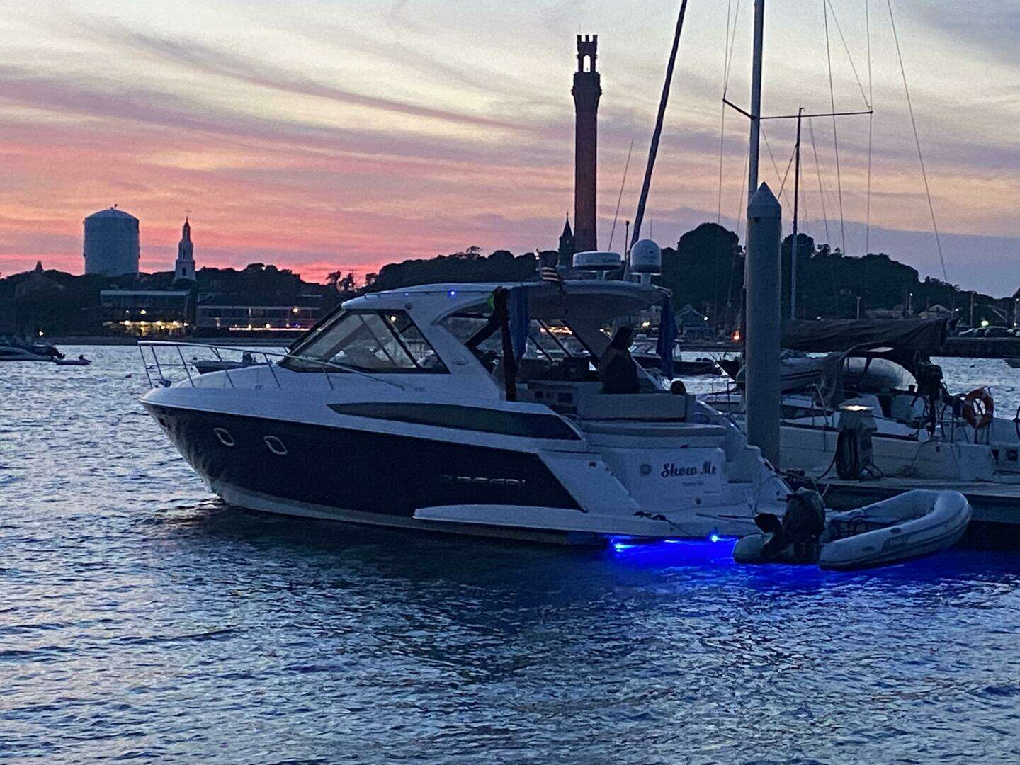 Welcome aboard 'Show Me', a 2011 Regal Sport Coupe powered by Volvo Penta D4-300 inboards with IPS drives and under 800 hours. Stunning color scheme with recently polished blue hull, beige cushion package, teak decks and white stamoid canvas enclosure.
