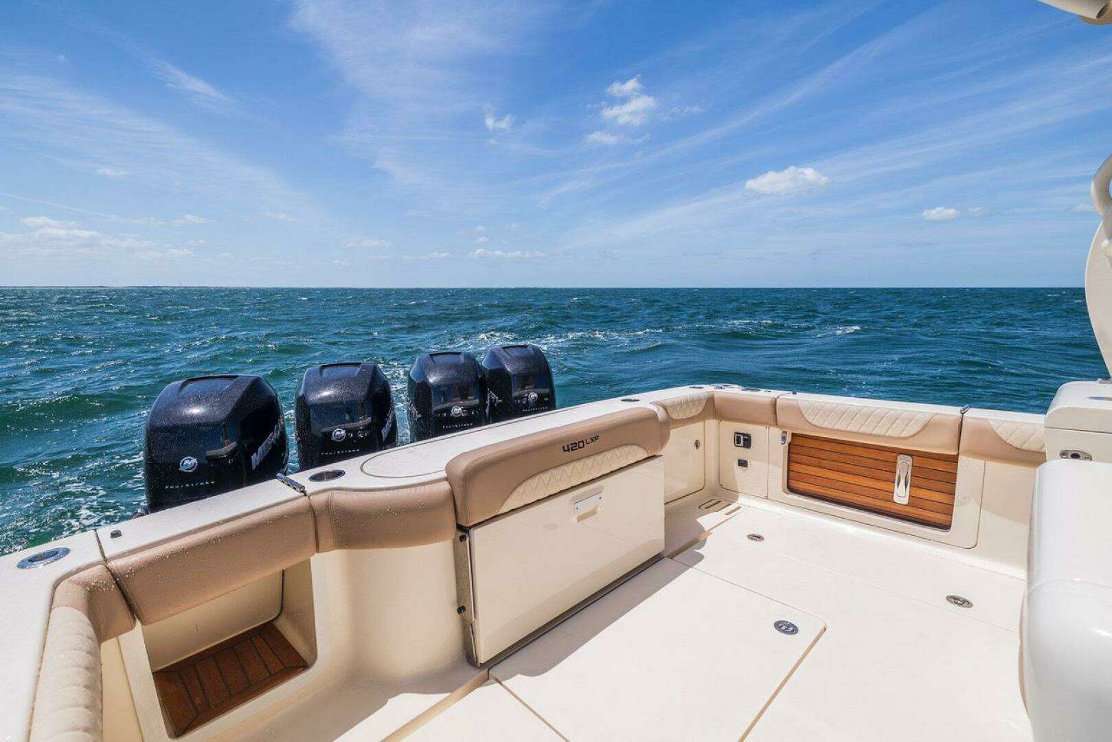 - Quad Mercury 350 Verado Outboards with Joystick Piloting, Autopilot & Skyhook