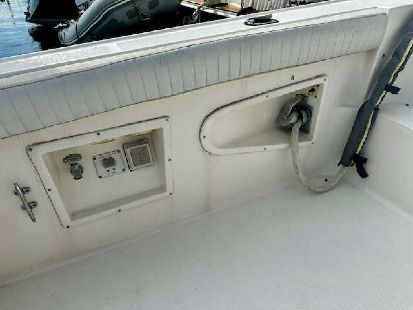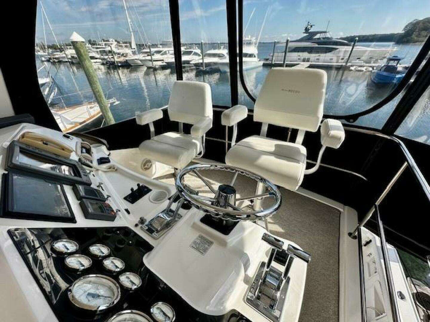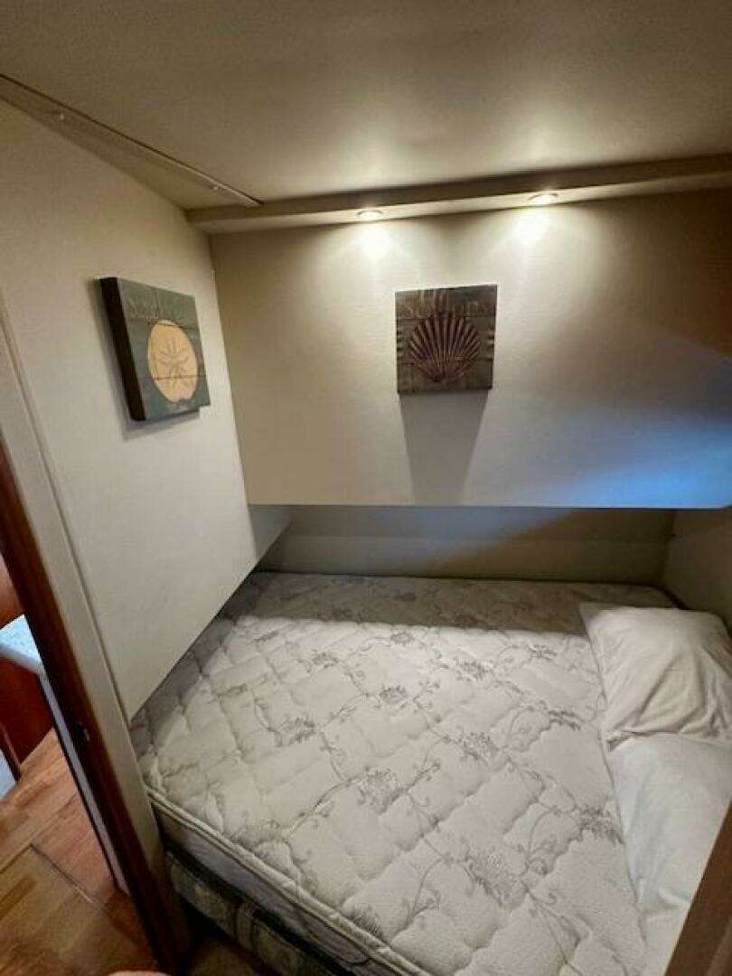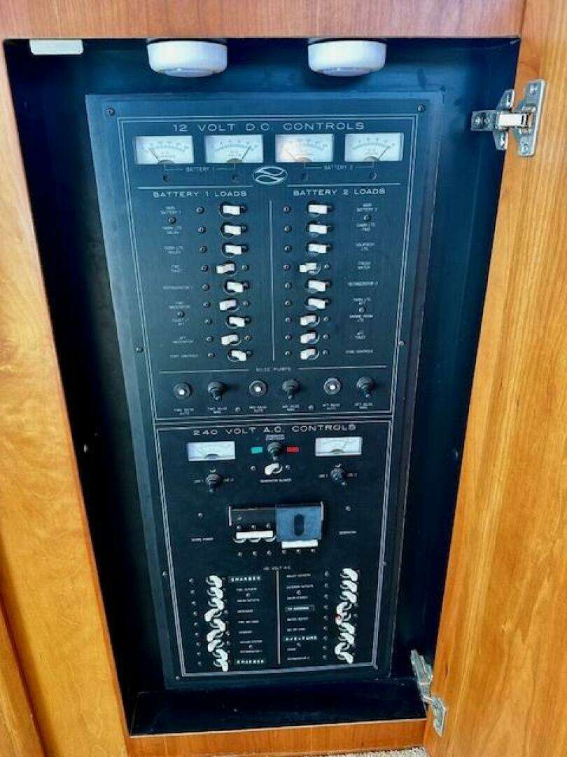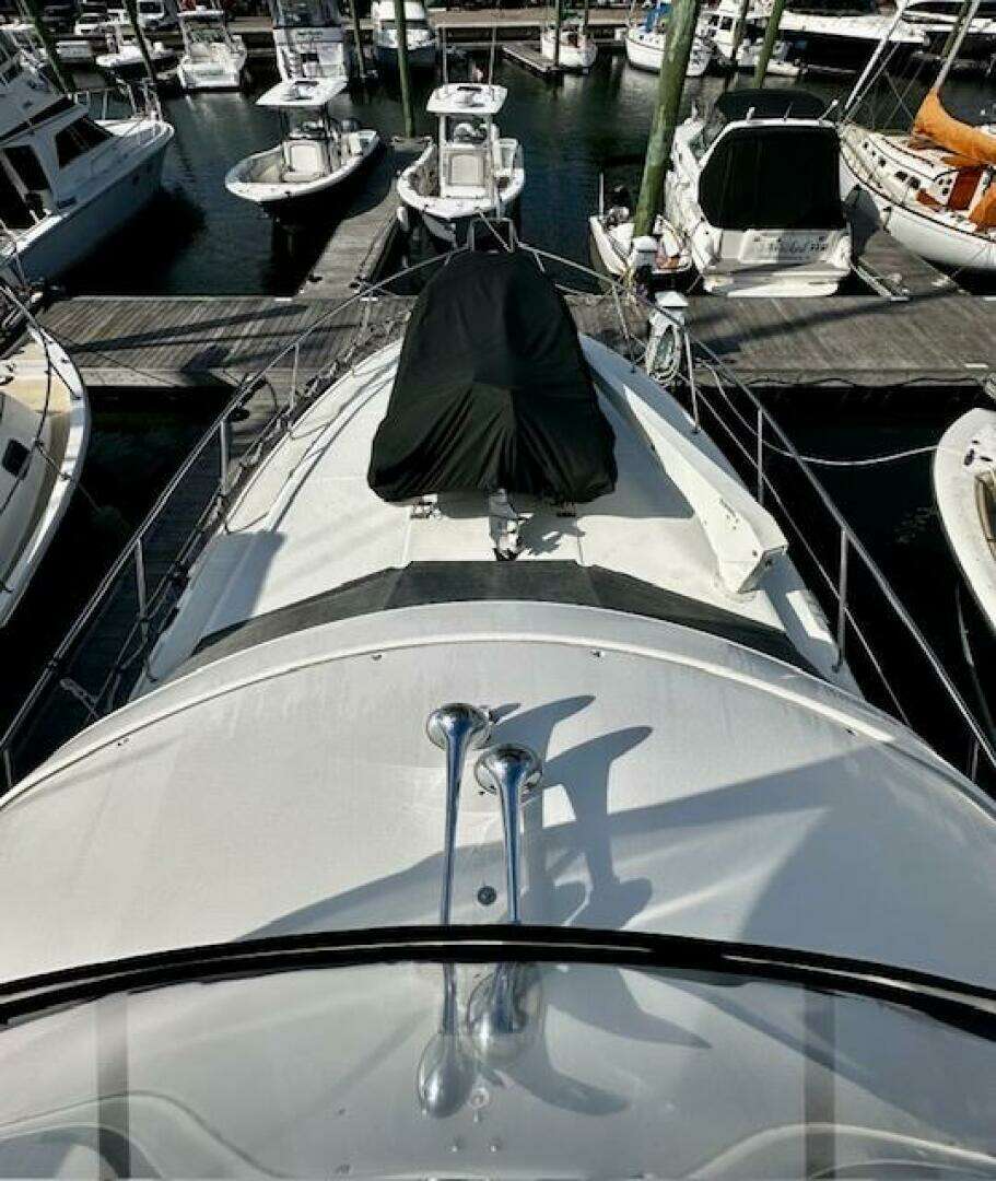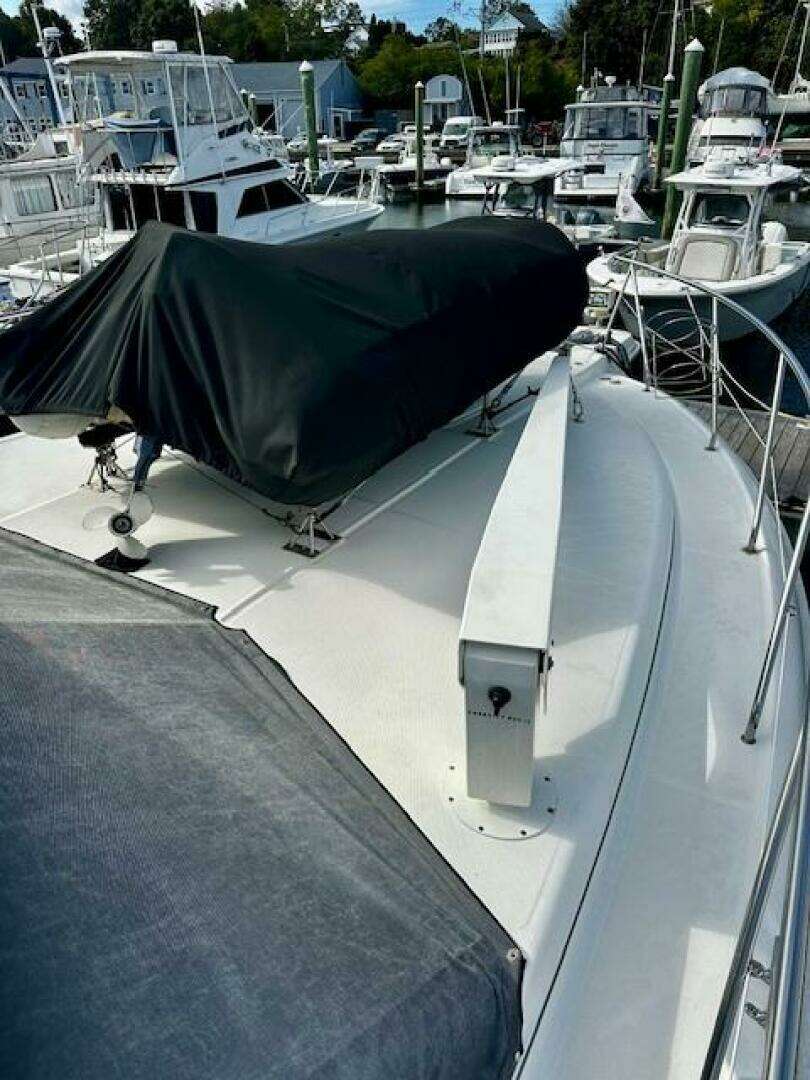 The current owner has completely kept up on every aspect of this vessel, including adding a bow AND stern thruster! A full 1000 hour service was recently performed on the Cummins Deisels; a cost of over 15K. ALL service records and receipts have been meticulously maintained in folders aboard the vessel. Extra parts and filters, etc for the engines. Newer canvas and isinglass on the fly bridge. Camper back included for the large cockpit. Hard bottom RIB 310 dinghy with 15hp Yamaha included.