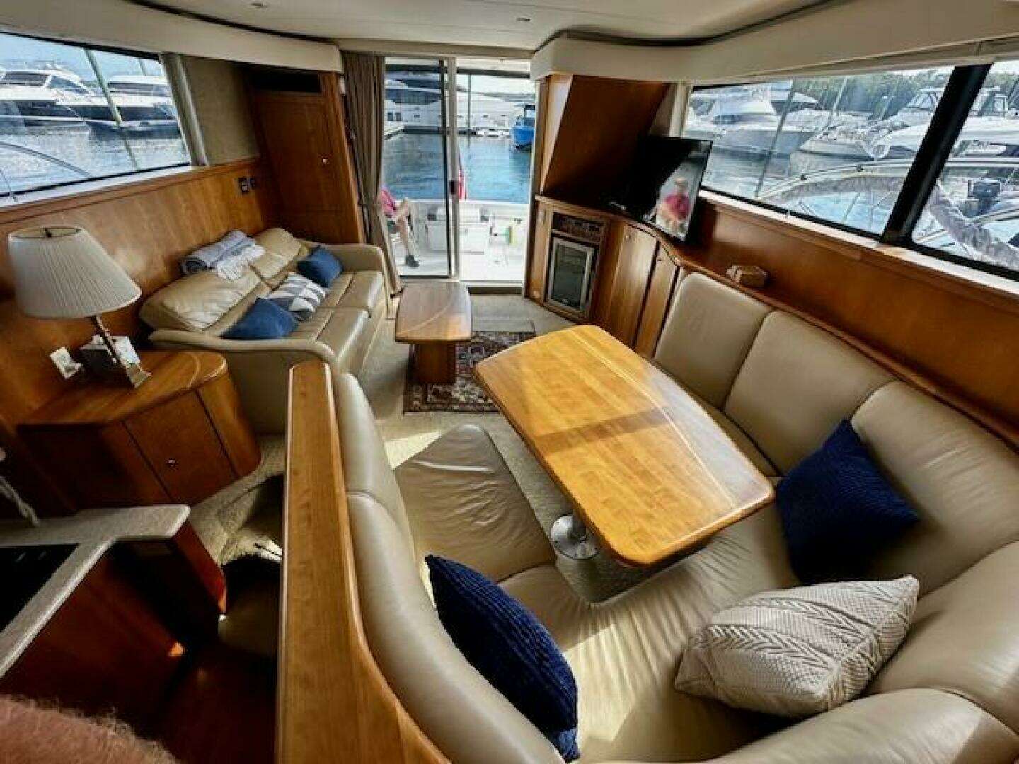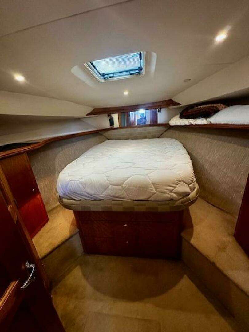 Introducing the 2001 Silverton 42 Convertible, a stunning motor yacht that combines elegance with performance. With an overall length of 44.08 feet, this vessel features a robust fiberglass hull designed in a modified Vee shape, ensuring stability and smooth navigation on the water. Powered by twin Cummins 6BTA5.9M3 inboard engines, each delivering an impressive 370 horsepower, this yacht promises speed and reliability, as well as modest fuel consumption. With only 1300 hours of use and a full 1000 hour service performed, these engines are ready for new adventures. Equipped with an electric windlass, the Silverton 42 Convertible enhances your boating experience, making anchoring effortless. An added bow AND stern thruster make docking in tight spaces an absolute breeze, even in a breeze. A large and well thought out design, the main cabin is comfortable with plenty of seating. The galley is attached, keeping the chef in the social circuit. Beautiful solid cherry cabinetry with Corian countertops, with 19 cabinets and drawers, provides tons of storage. Just forward are the master and guest cabins. The yacht also includes a well-appointed head, with separate full shower stall. Whether you're cruising or entertaining, this motor yacht is designed for both relaxation and excitement, making it an ideal choice for those seeking a blend of luxury and performance on the water.