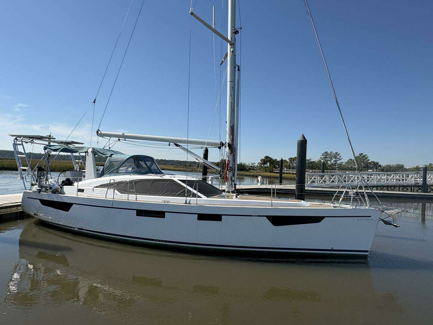 Off The Grid was commissioned and delivered to her owner in Lymington, UK, in 2024. She is the first of the new Southerly 420s. She features a robust variable draft swing keel, twin rudders, a raised salon with excellent visibility, two heads, and a smartly designed rig/deck plan that makes the boat easy to handle.