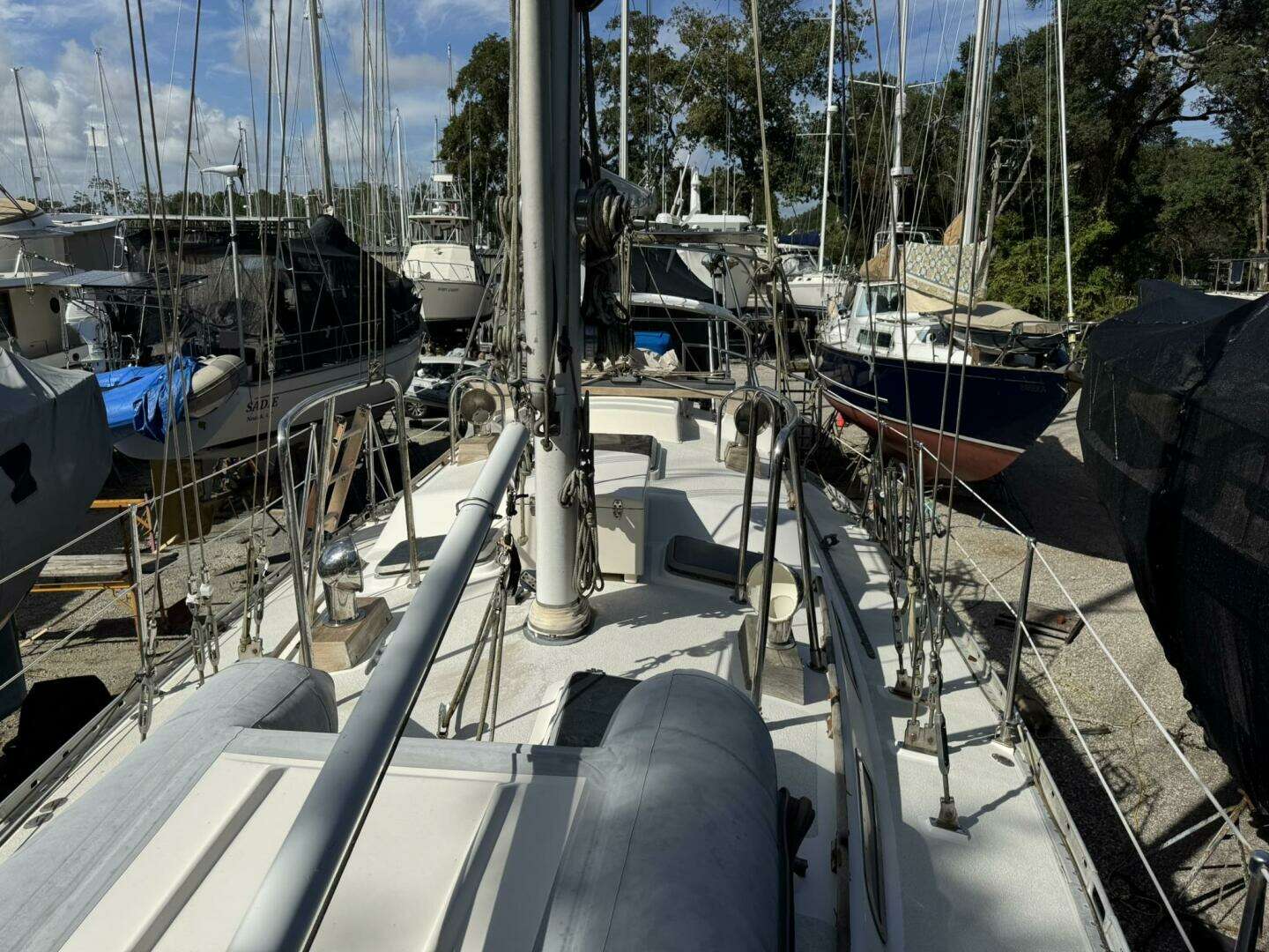 Refitted 1987 Tayana 42 “Passport” bluewater cutter—Vancouver 42 pedigree—with Yanmar diesel, rigging renewals, electrical/solar upgrades, and custom canvas. Offshore‑ready; shown in St. Marys, GA / Fernandina Beach, FL. Priced at $106,000.