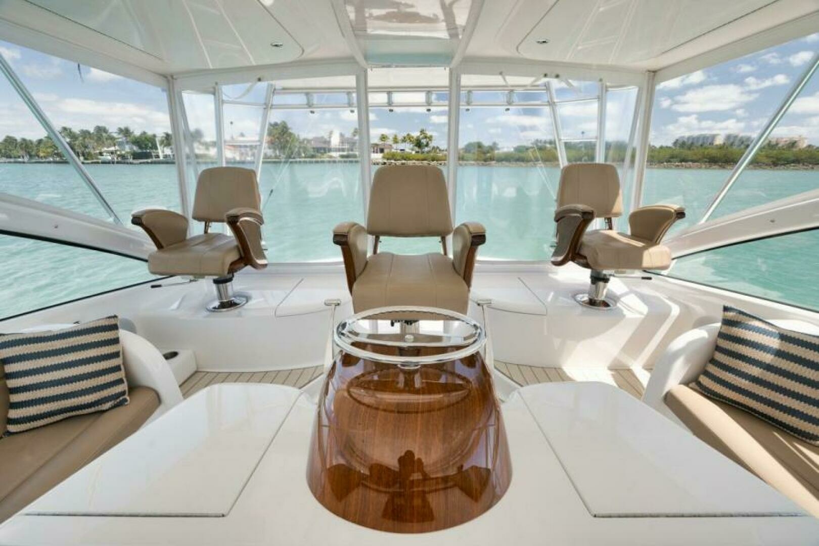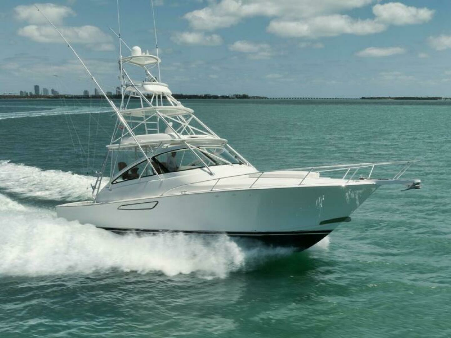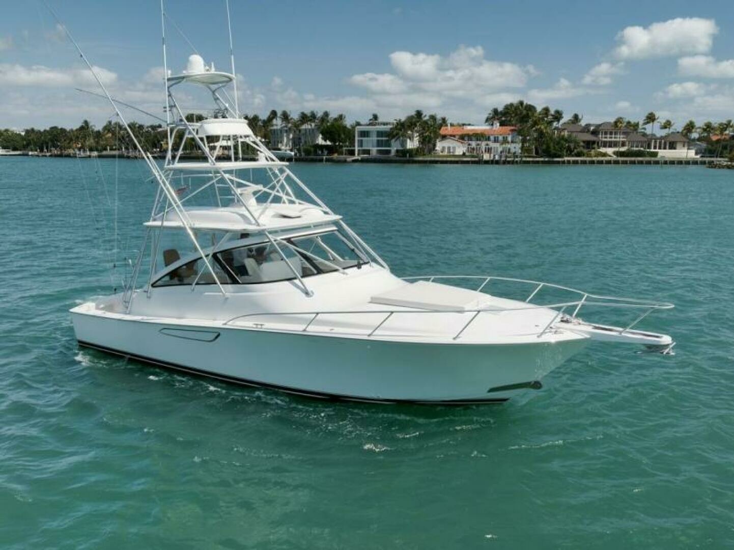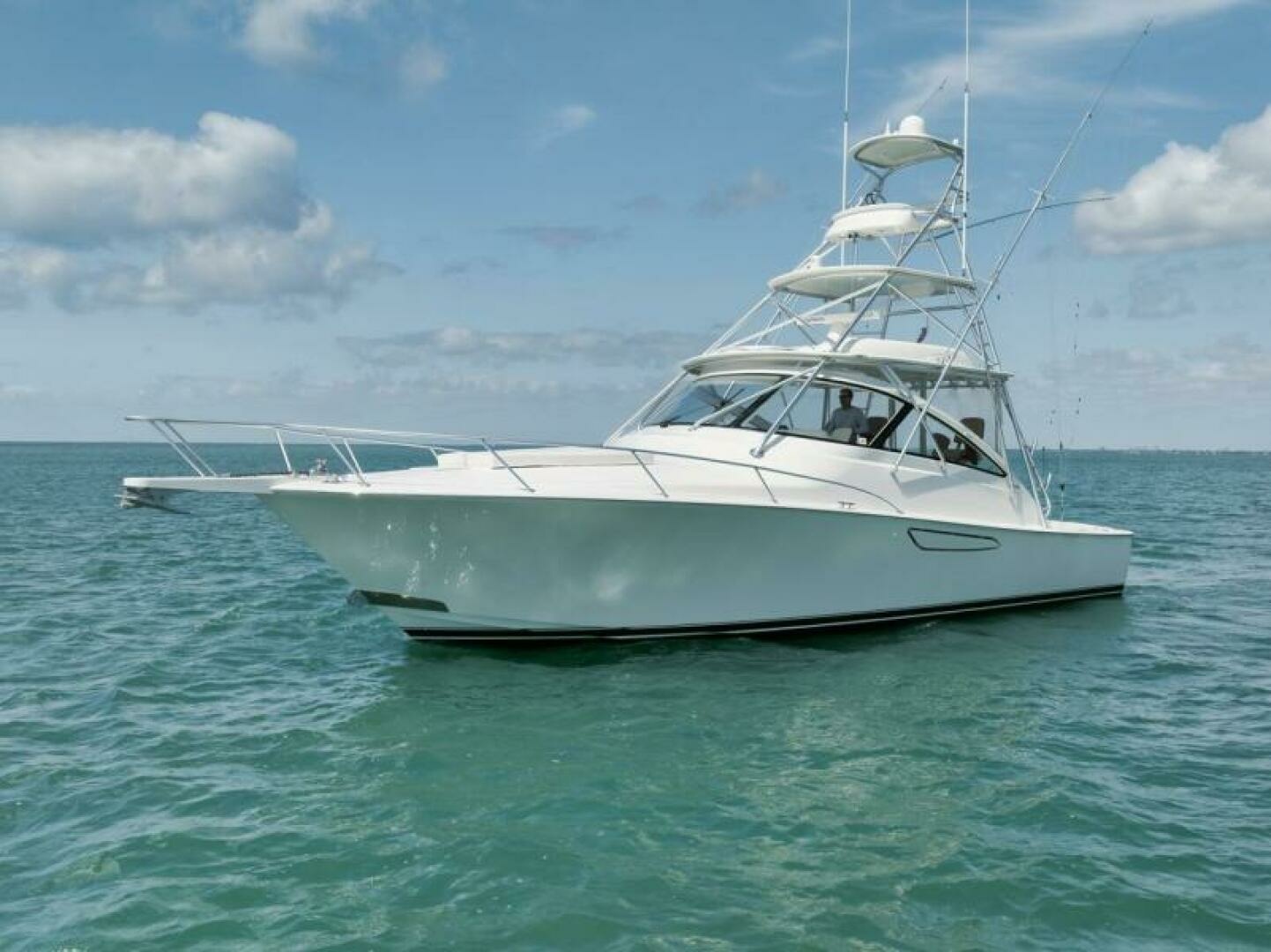 GAMECHANGER is a 2015 Viking 42 Express is ready to go and is one of the cleanest on the market today! The twin Cummins QSC 600 diesel engine package with Pod drives including joystick control and Skyhook provide extraordinarily good fuel consumption and easy maneuverability in tight docking situations. Her stylish two stateroom and single head layout make overnight fishing trips and traveling excursions a comfortable pleasure. All major services on the generator, engines, and pods have been recently completed. Recent updates on this 2015 Viking 42 Express includes bilge pumps, shower pump, kitchen and bathroom vent motors, green lights of electrical panel fixed, new battery chargers, and new house batteries.