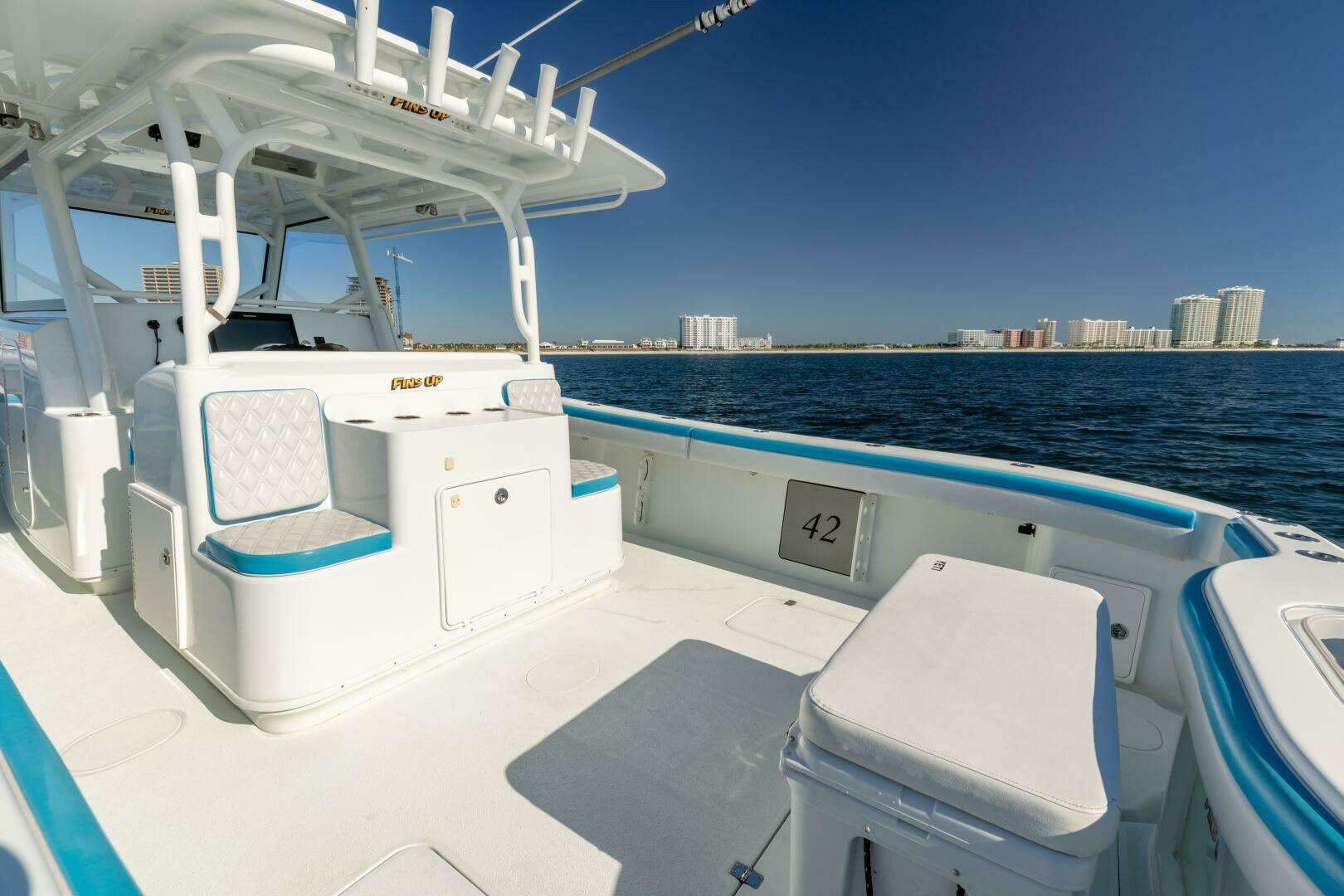 2017 42 Yellowfin Offshore Fins Up is the ultimate blend of performance, fishability, and comfort. Powered by quad Mercury Verado 350s, she delivers thrilling speed and reliability, while her captain‑maintained condition and recent service make her truly turnkey. With a striking blue hull, hard top, and Raymarine electronics, she’s equipped for serious offshore adventures. Designed as a fishing machine yet offering comfortable accommodations for two with a stateroom and head, Fins Up is clean, powerful, and ready to impress. Whether chasing big game offshore or cruising in style, this Yellowfin stands out as a rare opportunity to own a meticulously cared‑for sport fishing legend. Preliminary Listing - More info and pics coming soon!