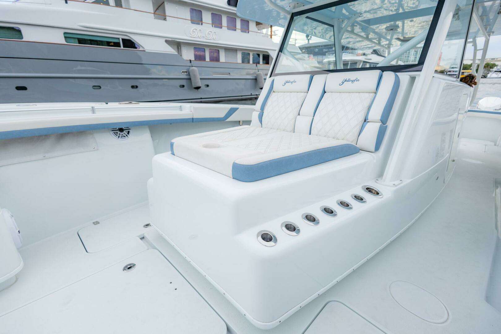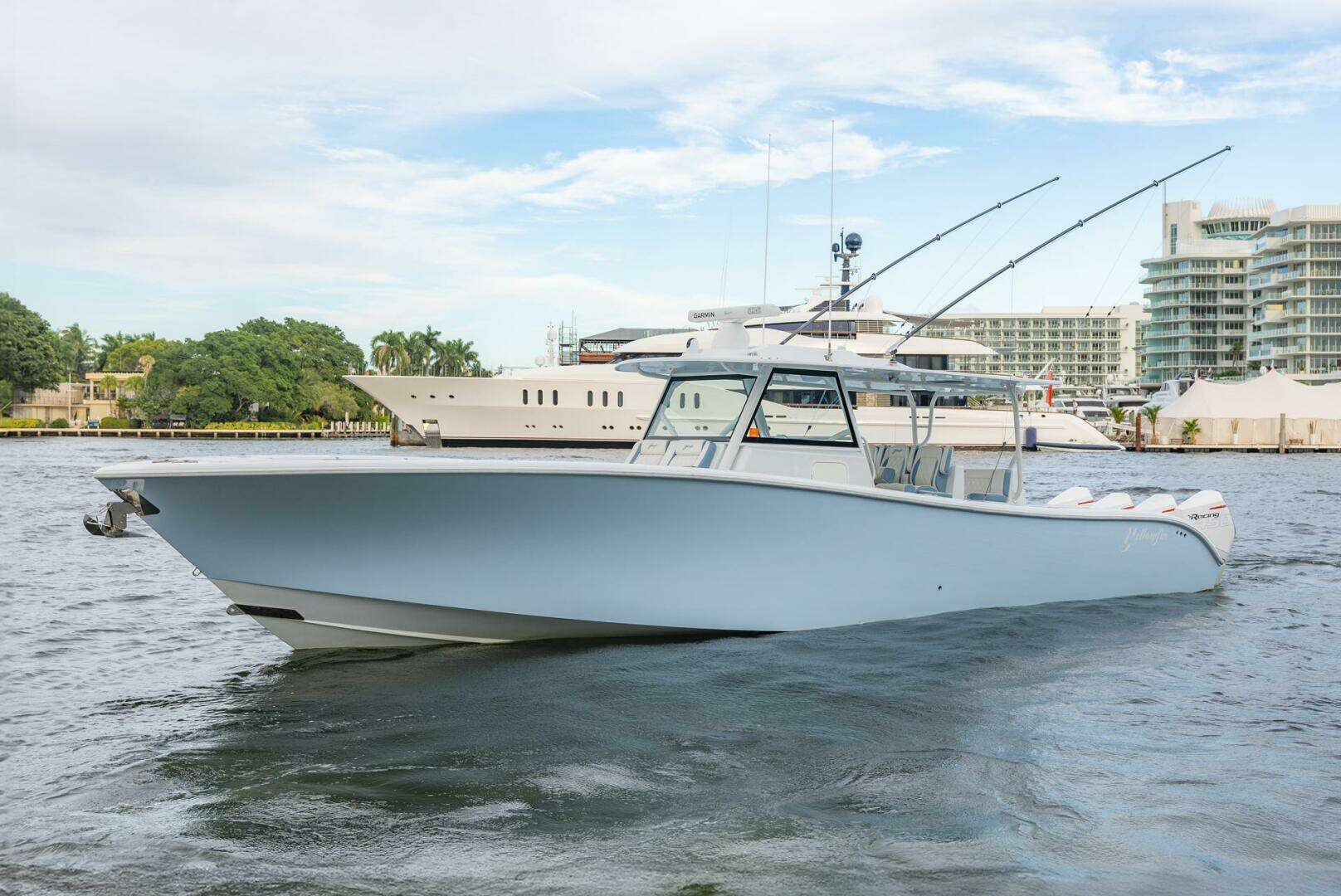 This Custom Built Yacht Tender Yellowfin is a 2023 42' that hits a max speed of 74 mph. She keeps up to say the least. This Center Console come with Quick Stabilizer, Frigibar Ice Machine that fills the fishbox, no bottom paint, Garmin electronics, Dual Row Seat, Dive Door, Bow Thruster