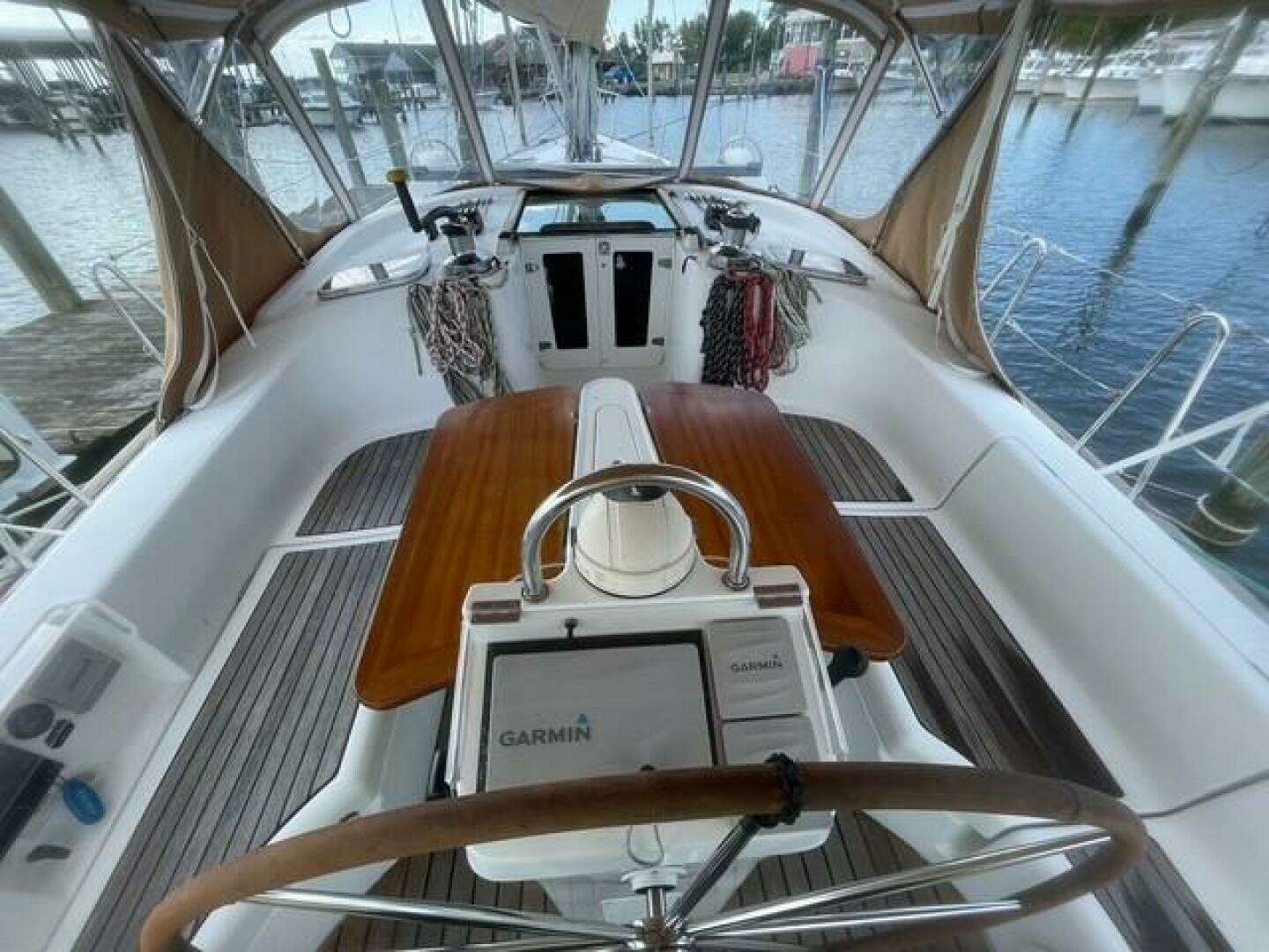 🧭 Upgraded Electronics & New Canvas This 423 has been outfitted with updated Garmin electronics in 2024, including chartplotter, radar, autopilot, and VHF—giving you confidence and control whether you're navigating foggy Maine harbors or crossing the Gulf Stream. The newer (2024) bimini and dodger (and full eisenglass enclosure) offer excellent protection from sun and spray, creating a comfortable helm station and shaded lounging area. These upgrades not only enhance functionality but also add to the boat’s sleek, contemporary look. In addition, a full 3-part canvas winter cover is included when she’s tucked away for her winter’s nap.