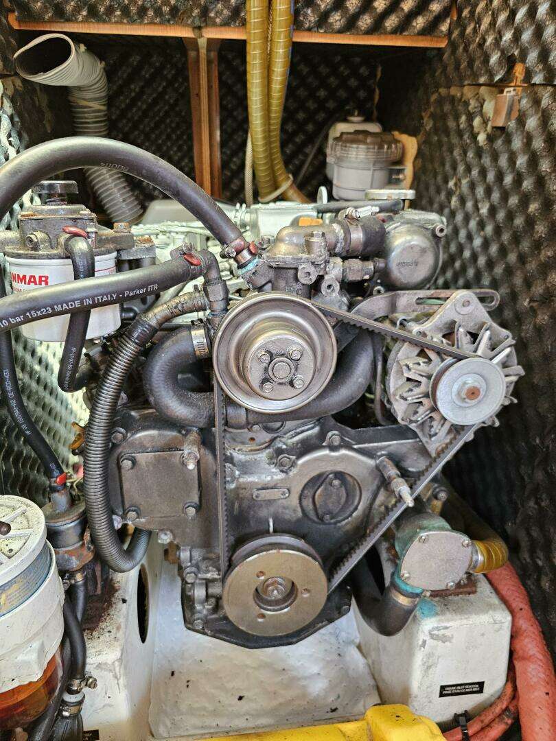 The Yanmar diesel engine starts instantly and runs smoothly. The boat is equipped with dual 30-amp shore power inlets, 2 AGM house batteries (new 2024), a separate starting battery, and a powerful battery charger. Hot water is supplied via both a 6-gallon tank and the engine heat exchanger.