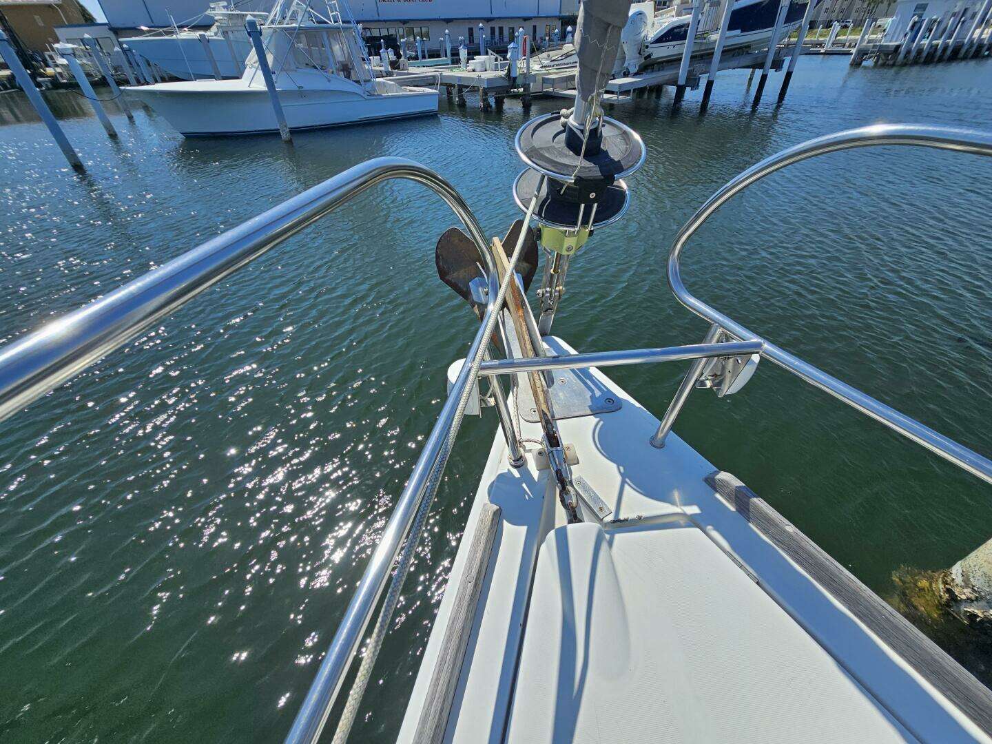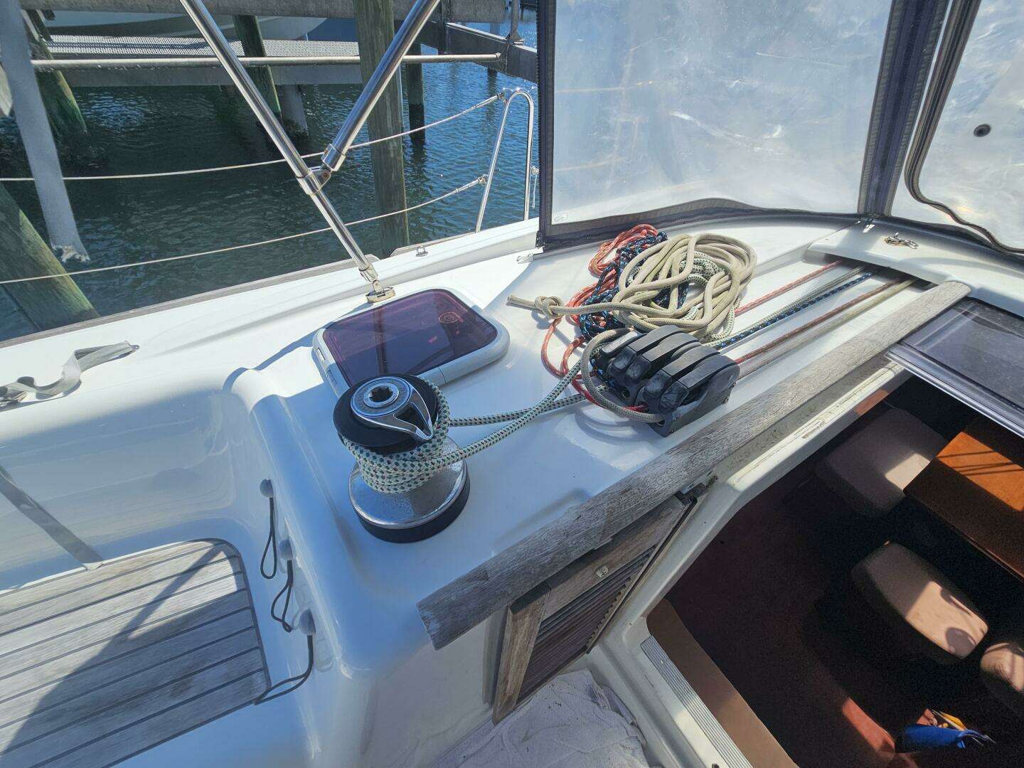 The helm station is equipped with all the electronics a modern sailor needs. The Raymarine chartplotter is easily viewed from each help locations. The ICOM VHF radio with remote mic and AIS receiver make for safe passages.