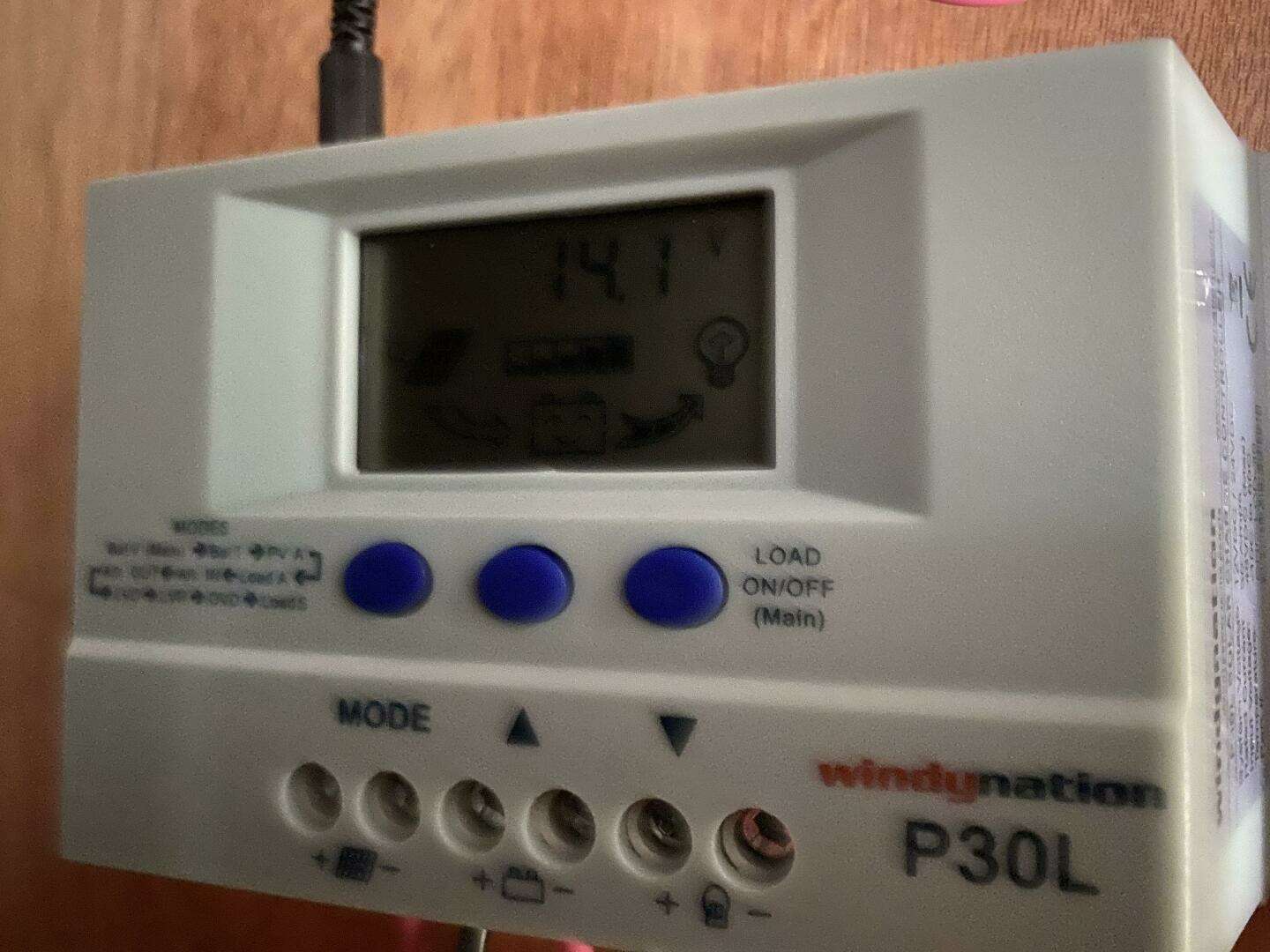- Solar Panels (on arch): 100 watt high efficiency (Polycrystalline Silicon) x 4 panels, model SOK-400WP-P30L, Windy Nation [258.06 x 7.72 x 170.33 cm; 32.2 kg], charge controller, Windy Nation P30L LCD, 30A (CHC-LCD-30) (new 2020)