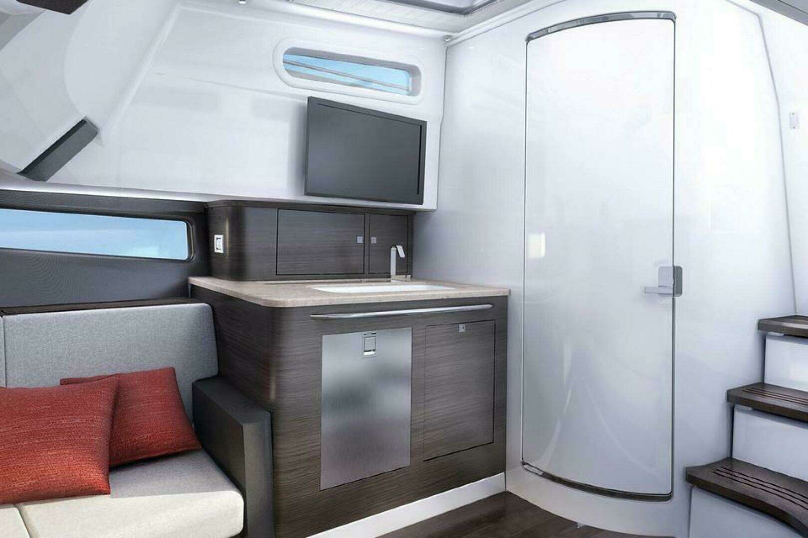- Spacious cabin with V-berth offers 7 feet of headroom and two available color schemes