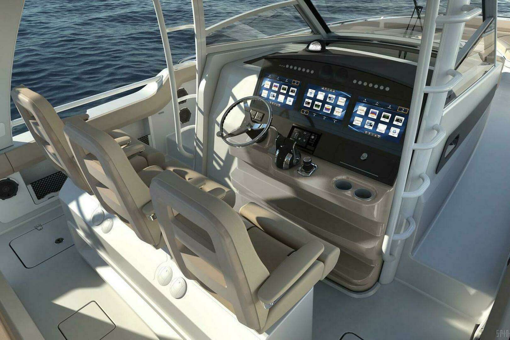 The 420 Outrage offers exceptional comfort, legendary capability, and unmatched state-of-the-art features. With its expansive bow and innovative seating galore, to the beautifully designed convertible helm and cockpit areas, and its well-equipped cabin with enclosed head, the 420 is a champion at onboard entertaining and pleasure cruising. This yacht boasts a number of inviting spaces for settling in during a day of fun with family and friends.