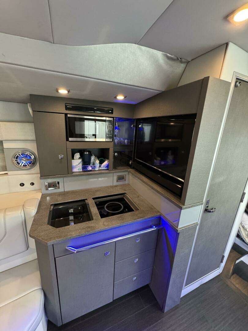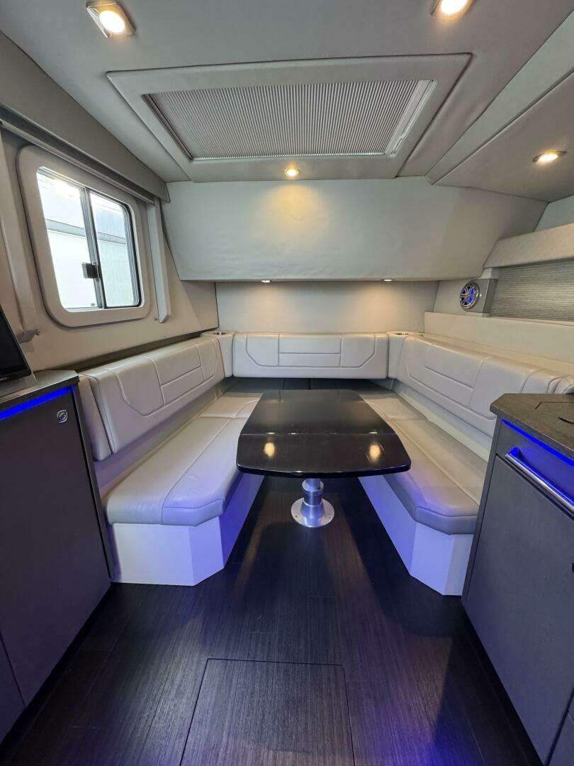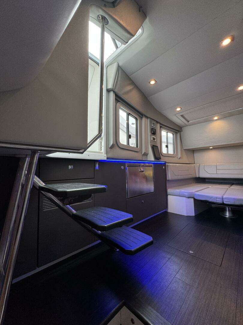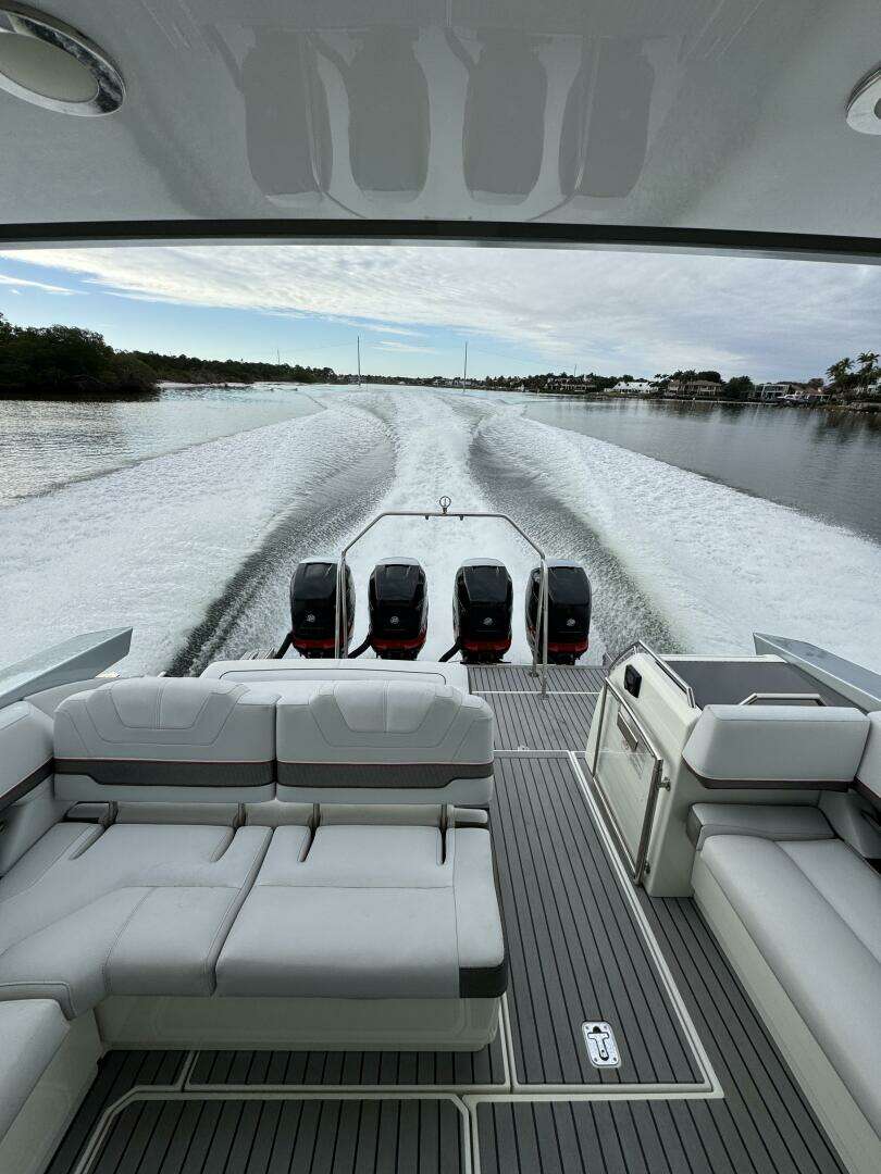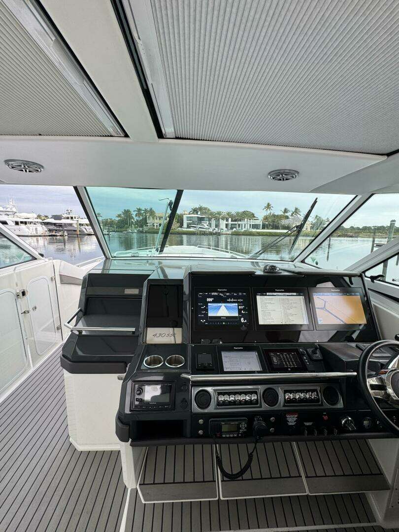 Powered by Mercury Racing 400R's with only 595hrs, delivering strong performance plus confident low-speed handling and docking. The boat’s helm is set up for easy operation, with modern electronics and joystick control.