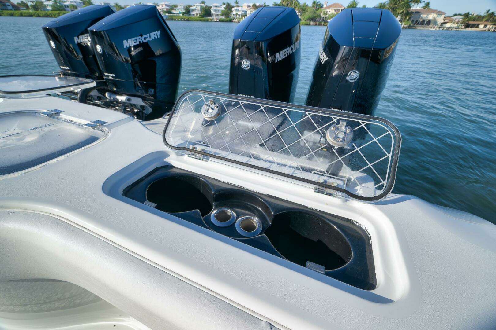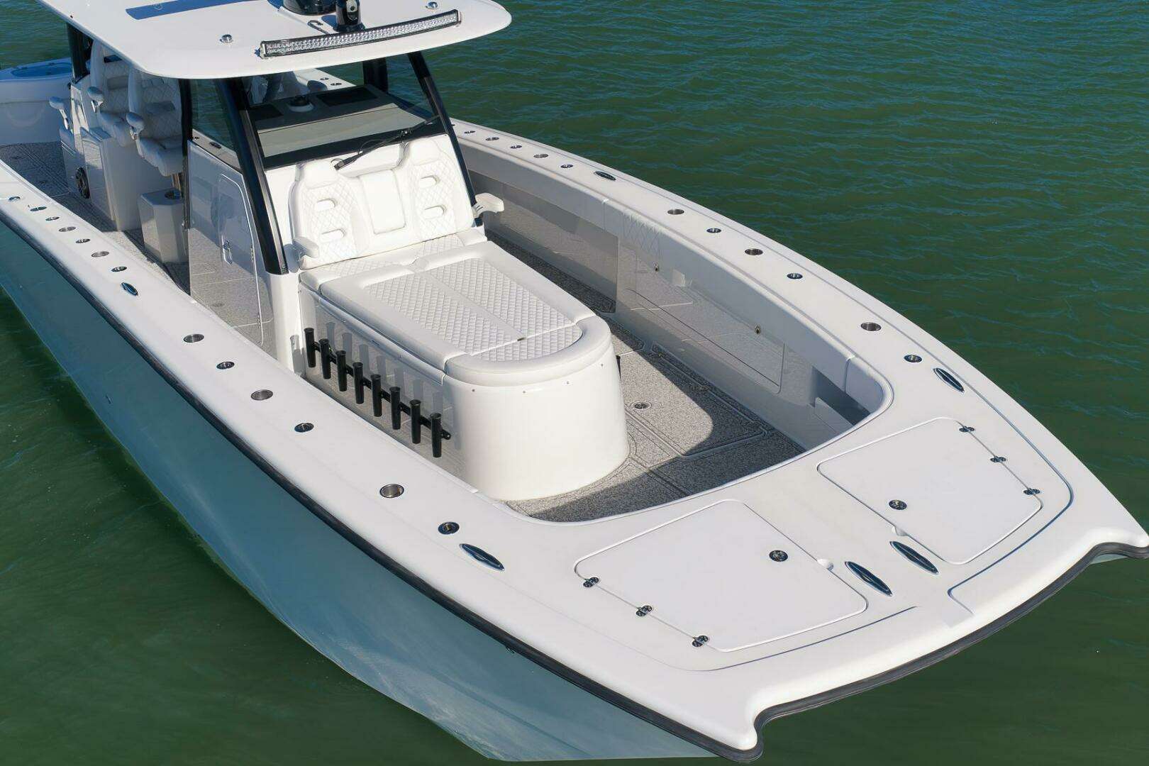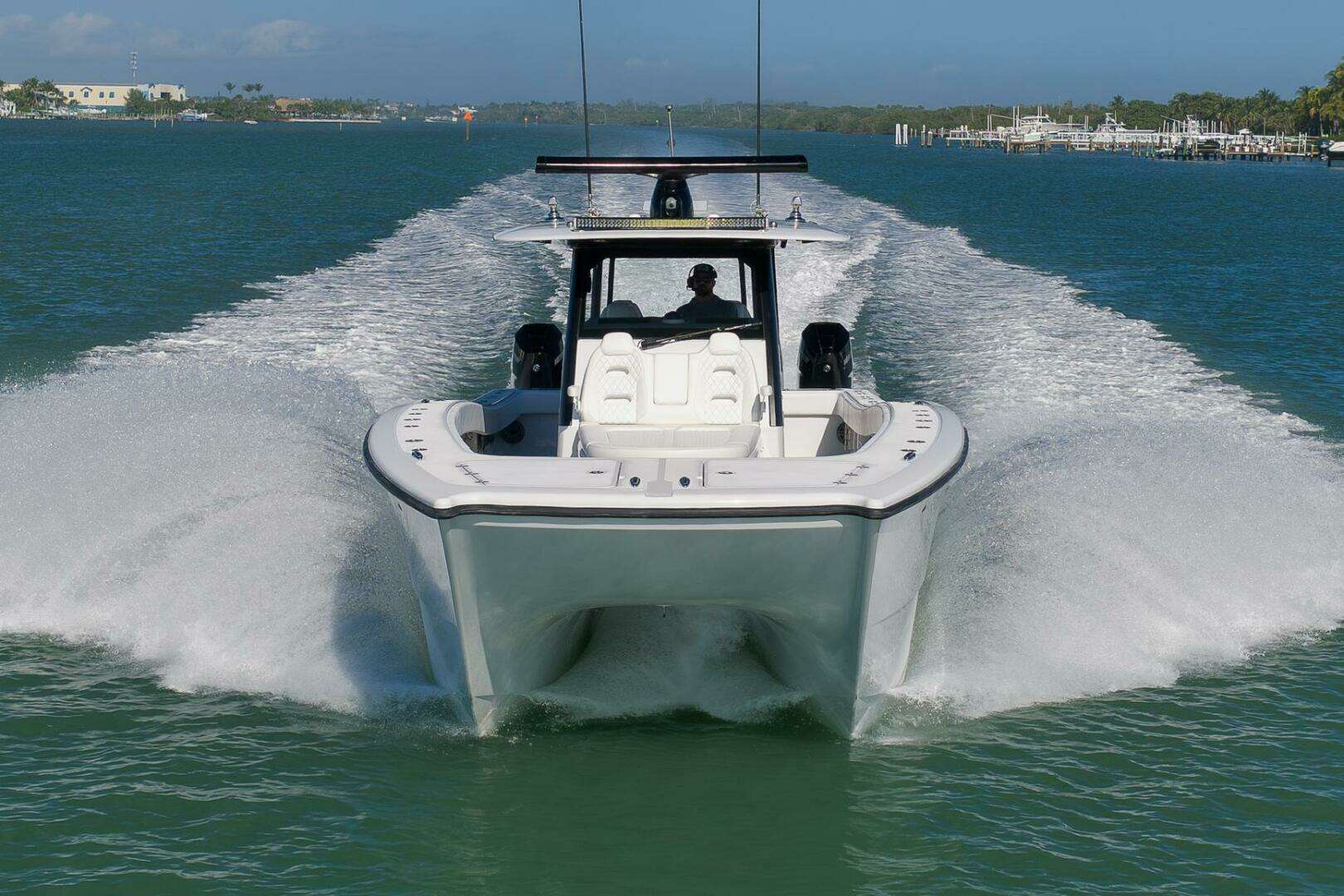 Freshly detailed and turnkey, this 2023 43’ Freeman is powered by Quad 400hp Mercury V10s with Platinum Warranty Coverage through 2031. She features extensive Garmin Electronics, a JL Audio Stereo, and Comfortable Seating including a Rear-Facing Seat.Paired with a Beautiful Custom Sport Trail Gooseneck Trailer, this Freeman is ready for her next adventure with a proud new owner. Aggressively priced, this boat will not last so do not hesitate to reach out!