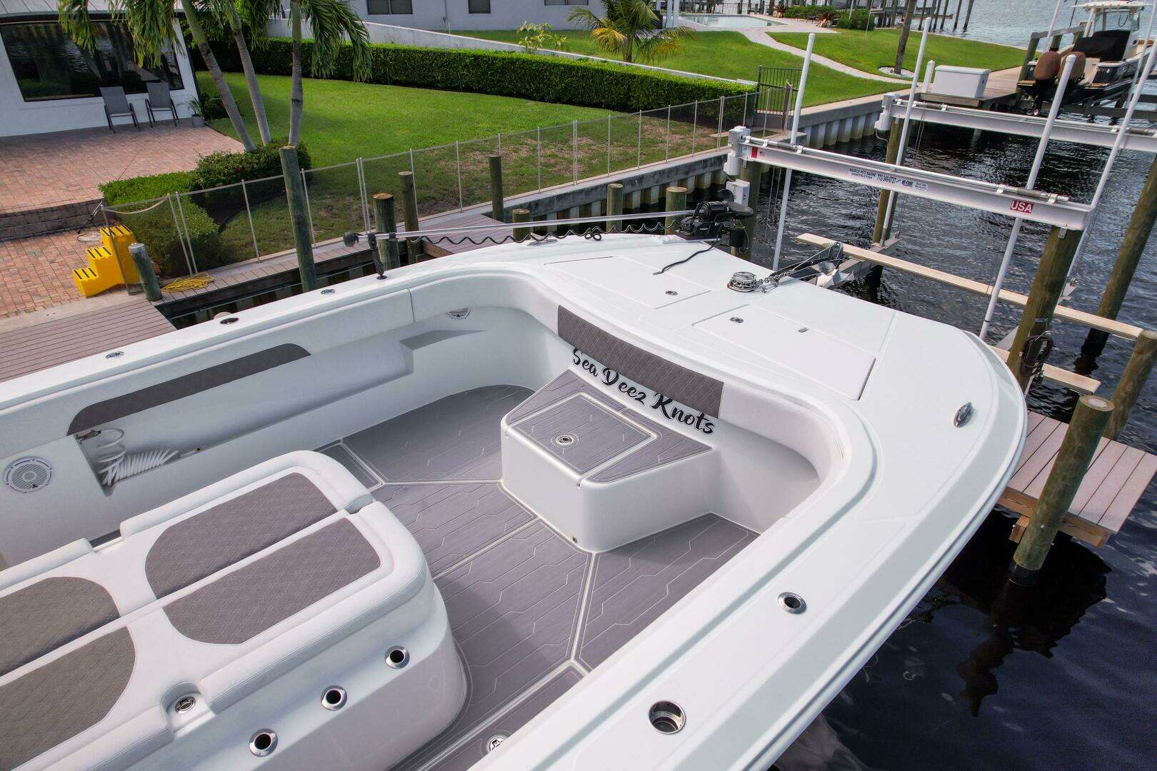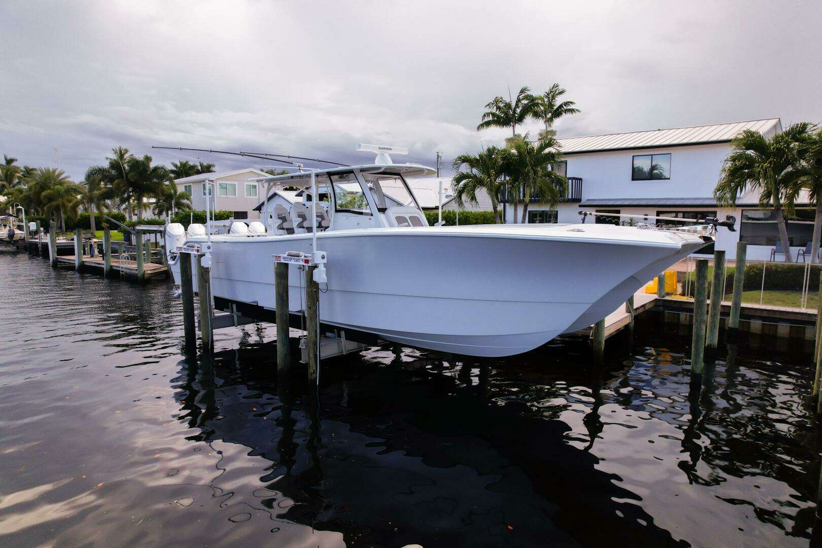 Powered by quad Mercury 400HP V10 Verados (white engines, 175 hours) with Mercury E-Steer and joystick, this 43 delivers outstanding performance, handling, and reliability. Outfitted with a comprehensive Garmin electronics package, upgraded JL Audio sound system, Power Pole Move trolling motor with lithium power, and Starlink satellite internet, every detail has been dialed in for serious anglers and family days alike.