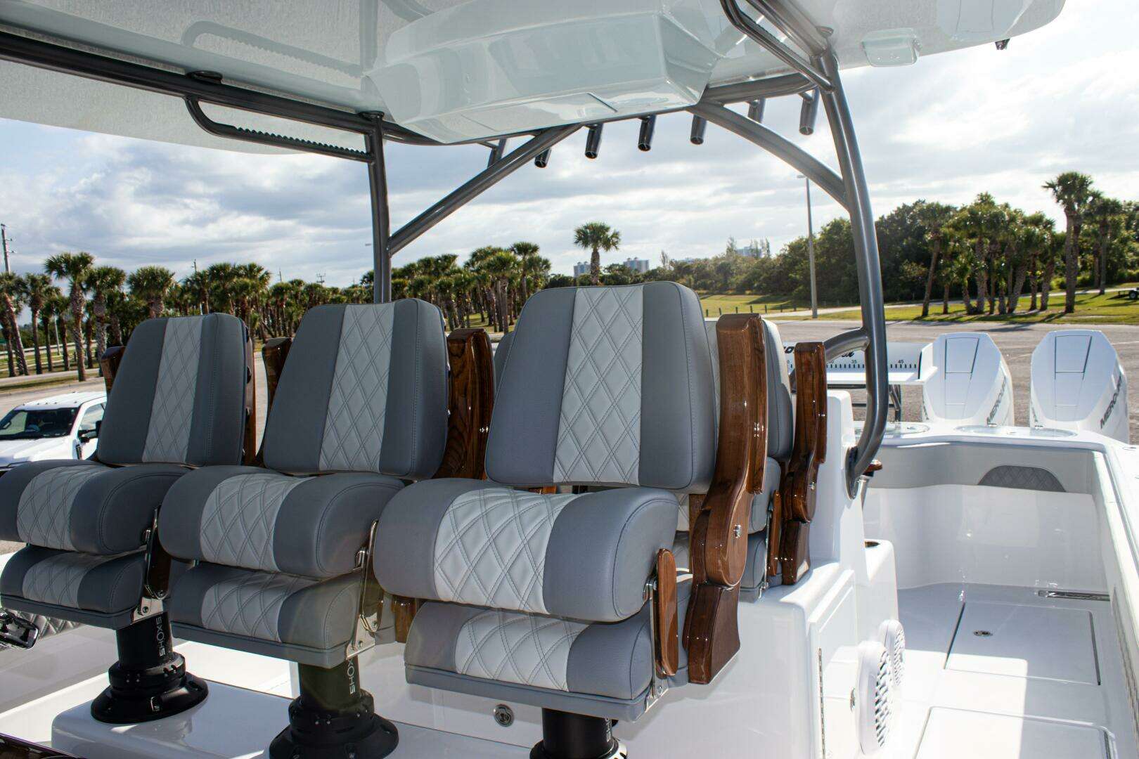 The Front Runner 43 Catamaran leaves little room for desire. Between its spacious deck layout, and standard dual row seating configuration, this boat has all the room you need to fish, and all the seating to get your crew home comfortably.