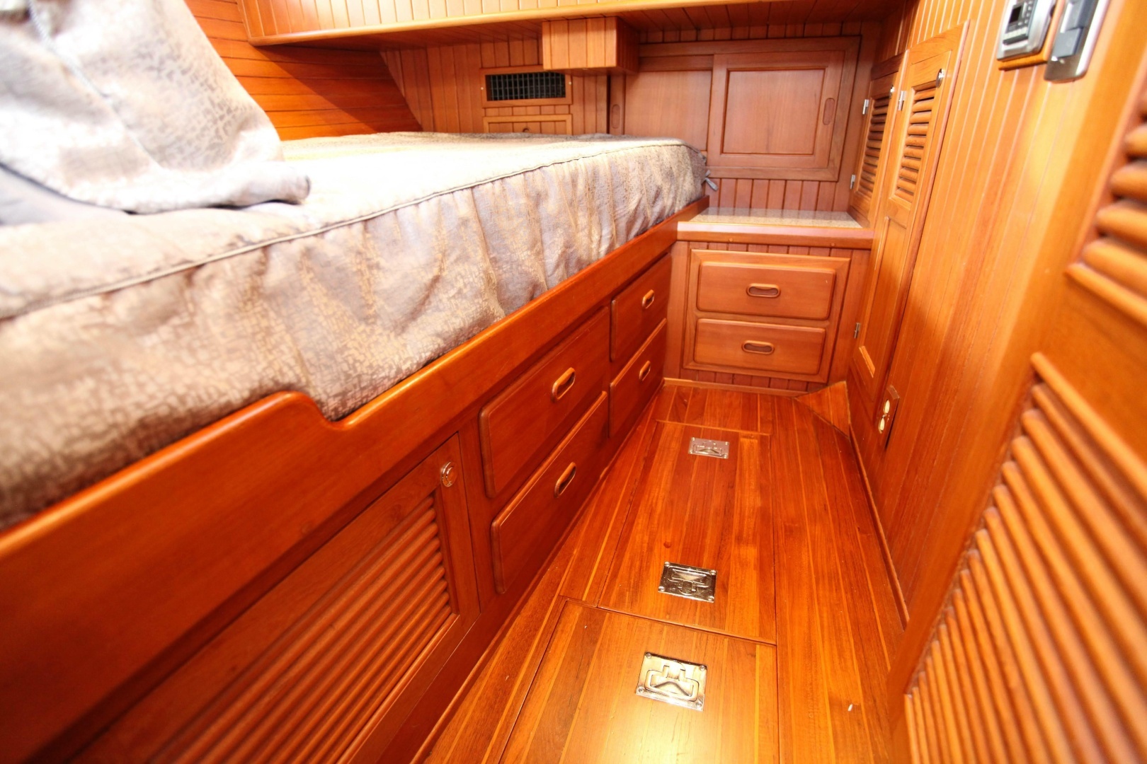 This semi‑custom pilothouse design offers a comfortable two‑cabin, two‑head layout well suited for cruising or liveaboard use.