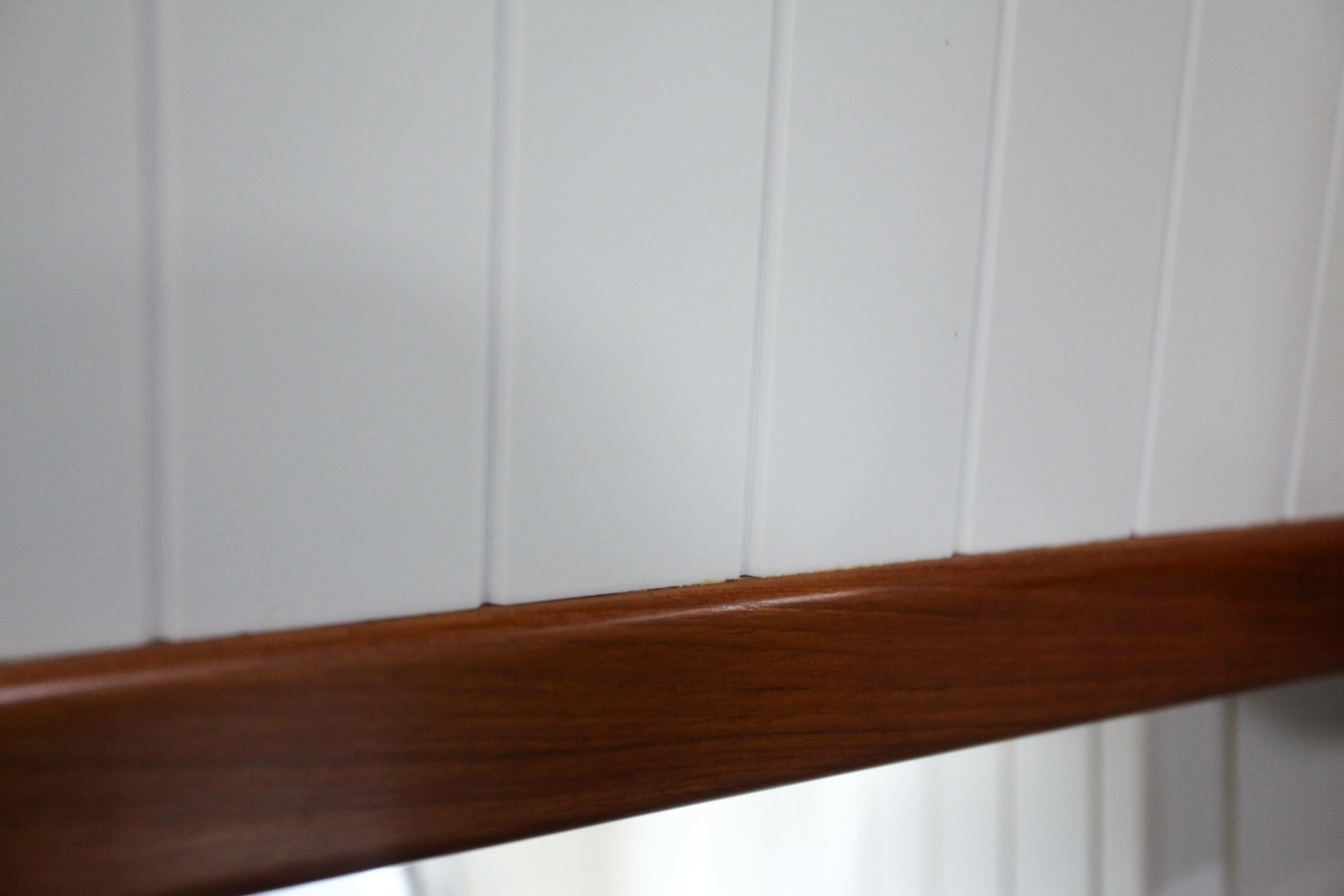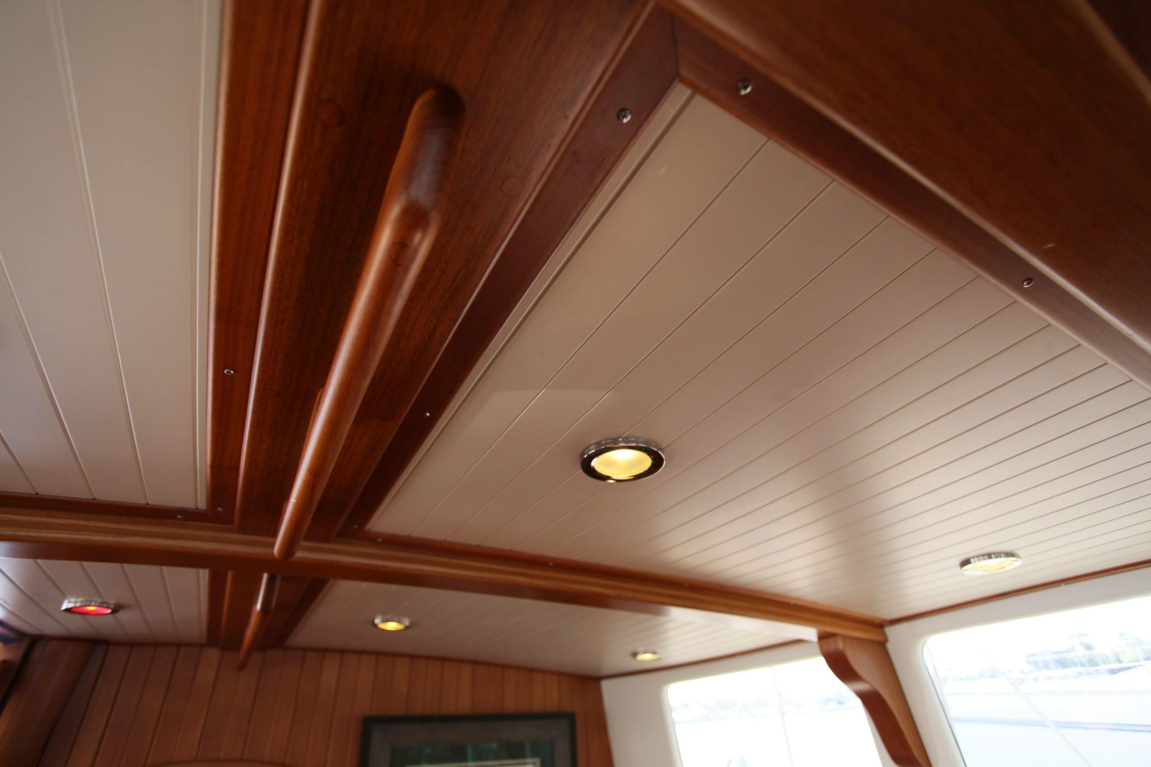 - Replaced vinyl headliner with removable Okoume plywood panels and ceiling grooves