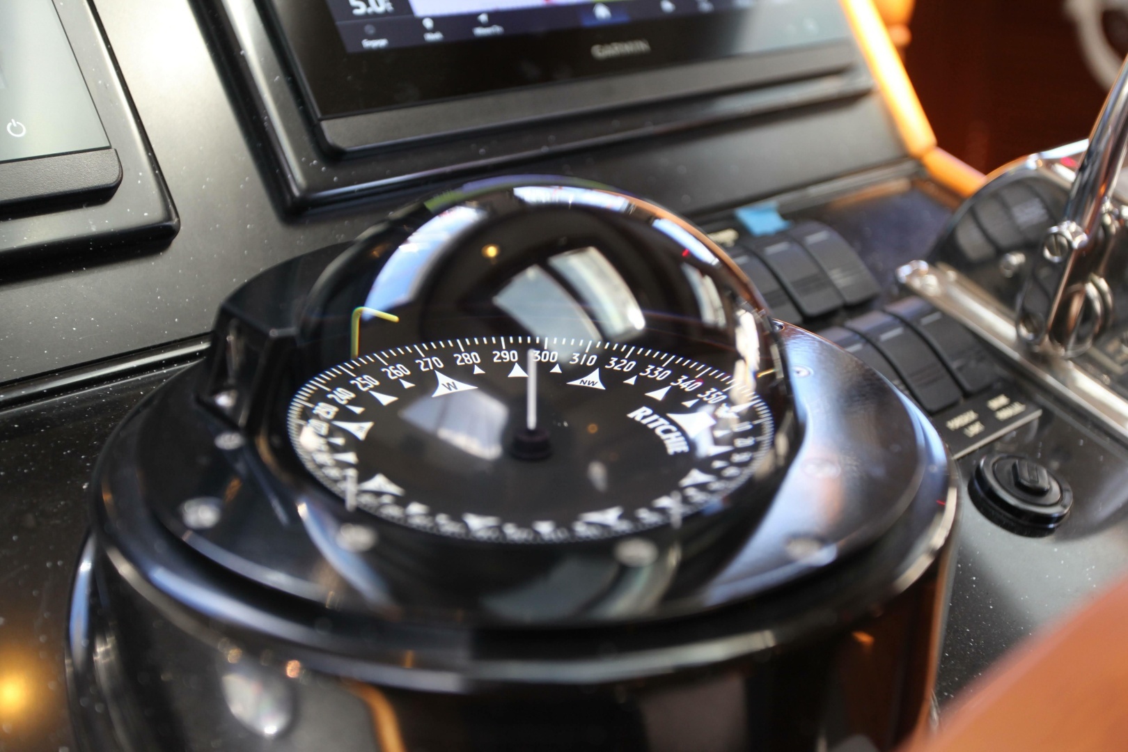 - Re‑fiberglassed and Corian‑finished binnacle to accommodate instruments and Richie compass