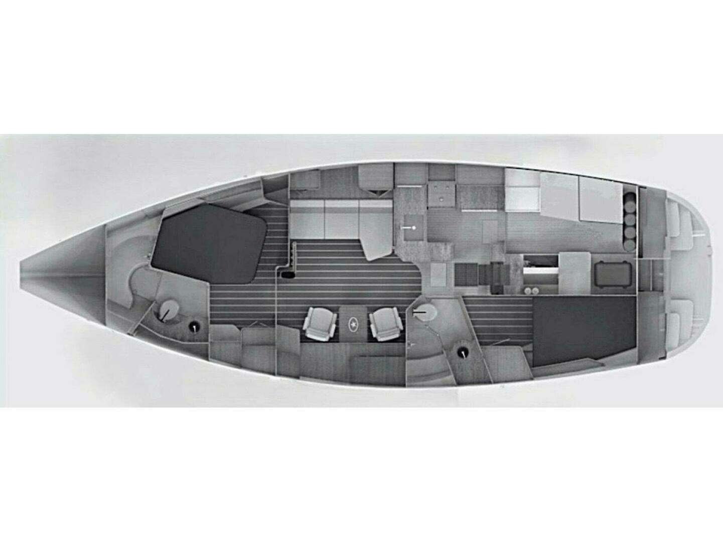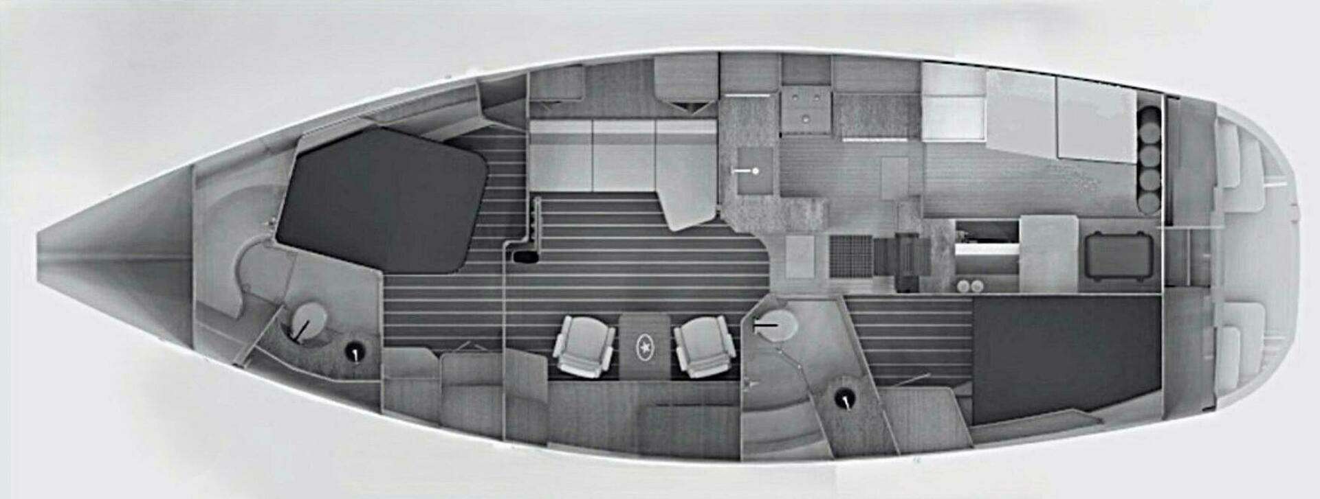 - Spacious salon with flexible configurations (settee, captain’s chairs, nav station)