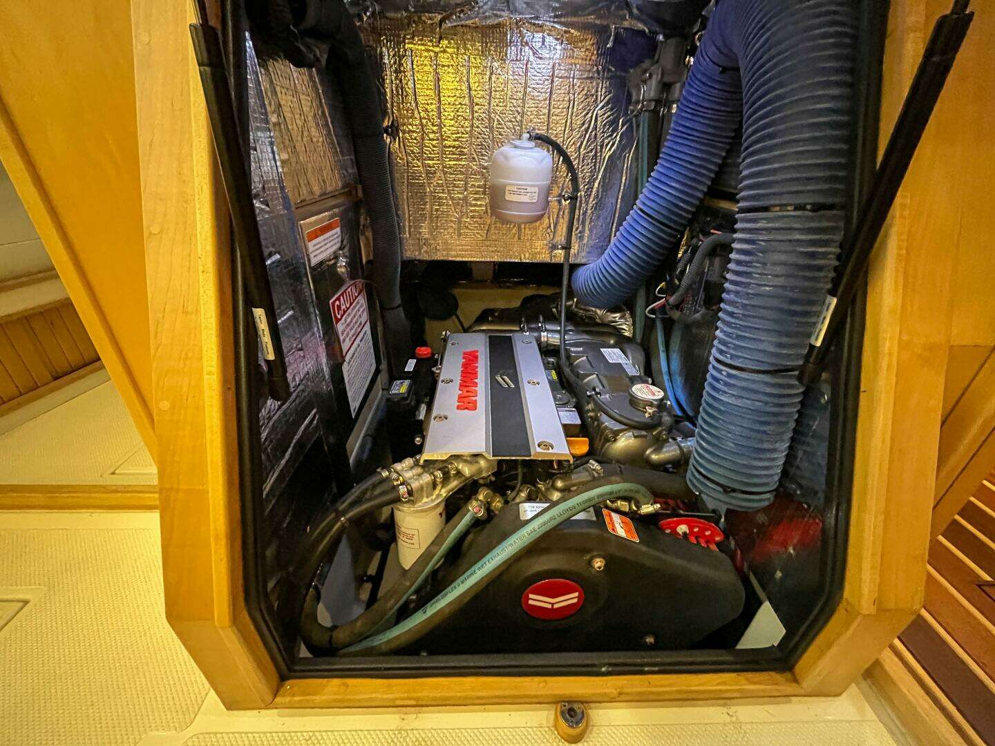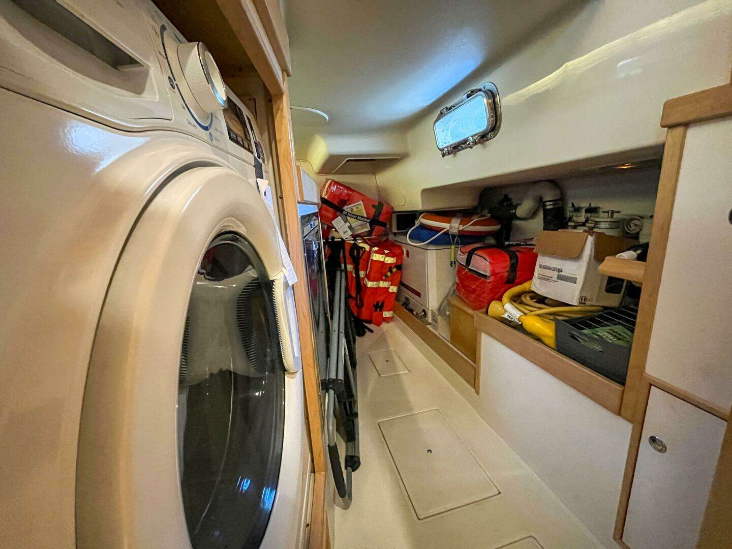 - Starboard side aft is a utility room with room for tools, spare parts, fenders, life jackets, dedicated engine oil change system, dual Racor filters, Northern Lights Generator (only 26 hours!), washer/dryer and watermaker