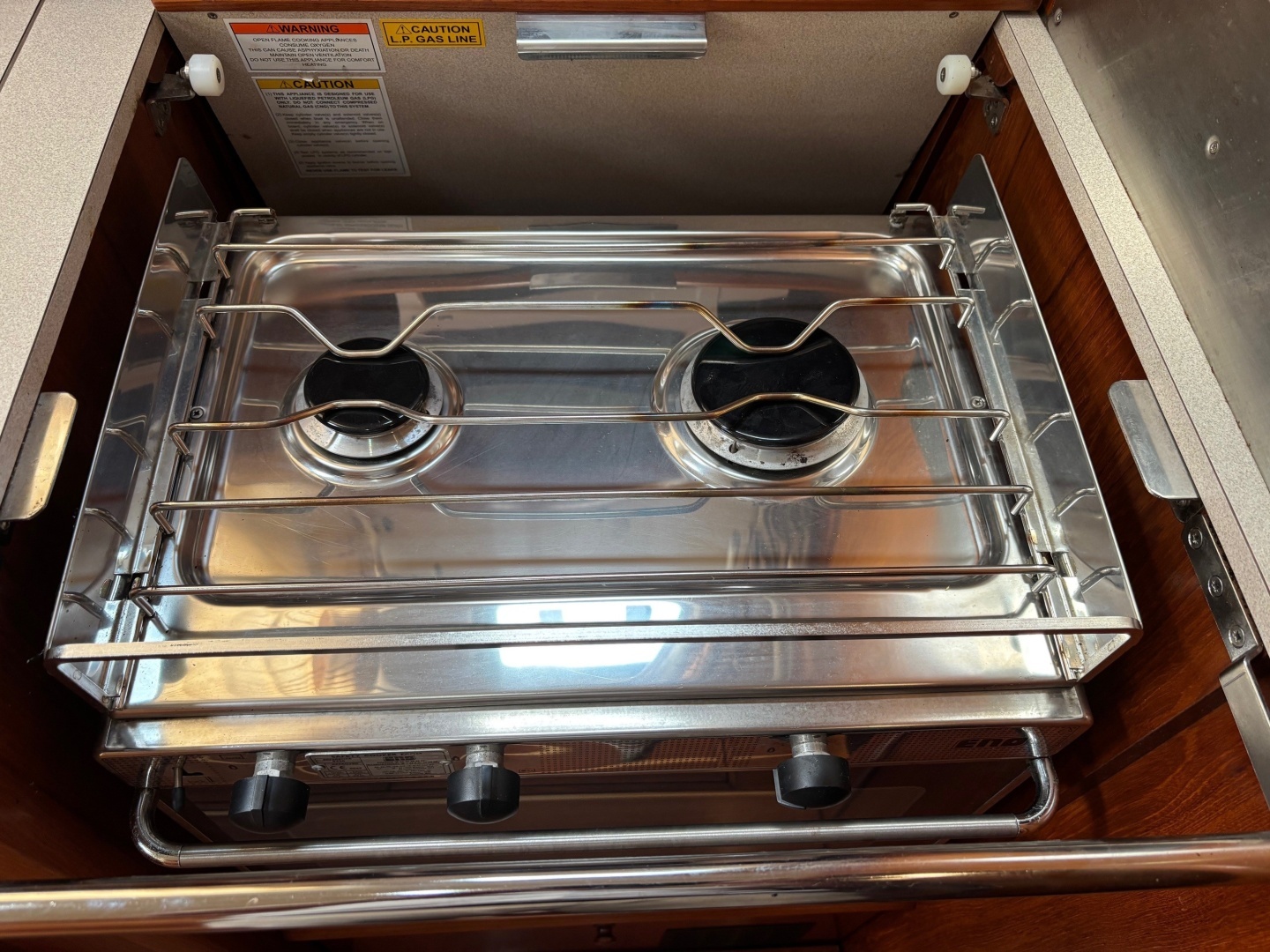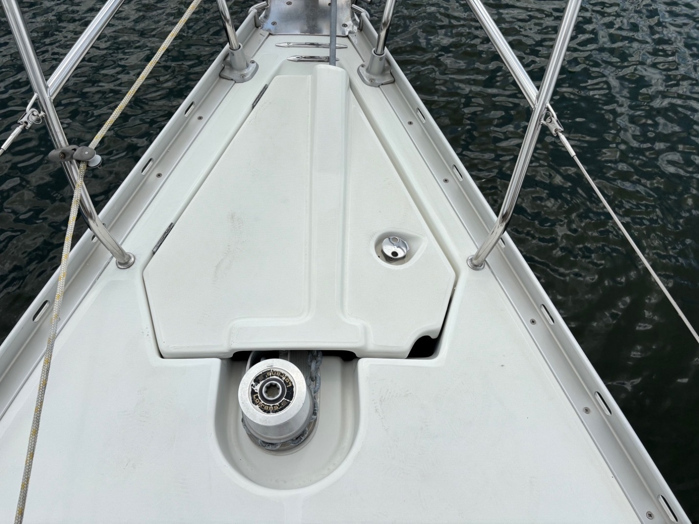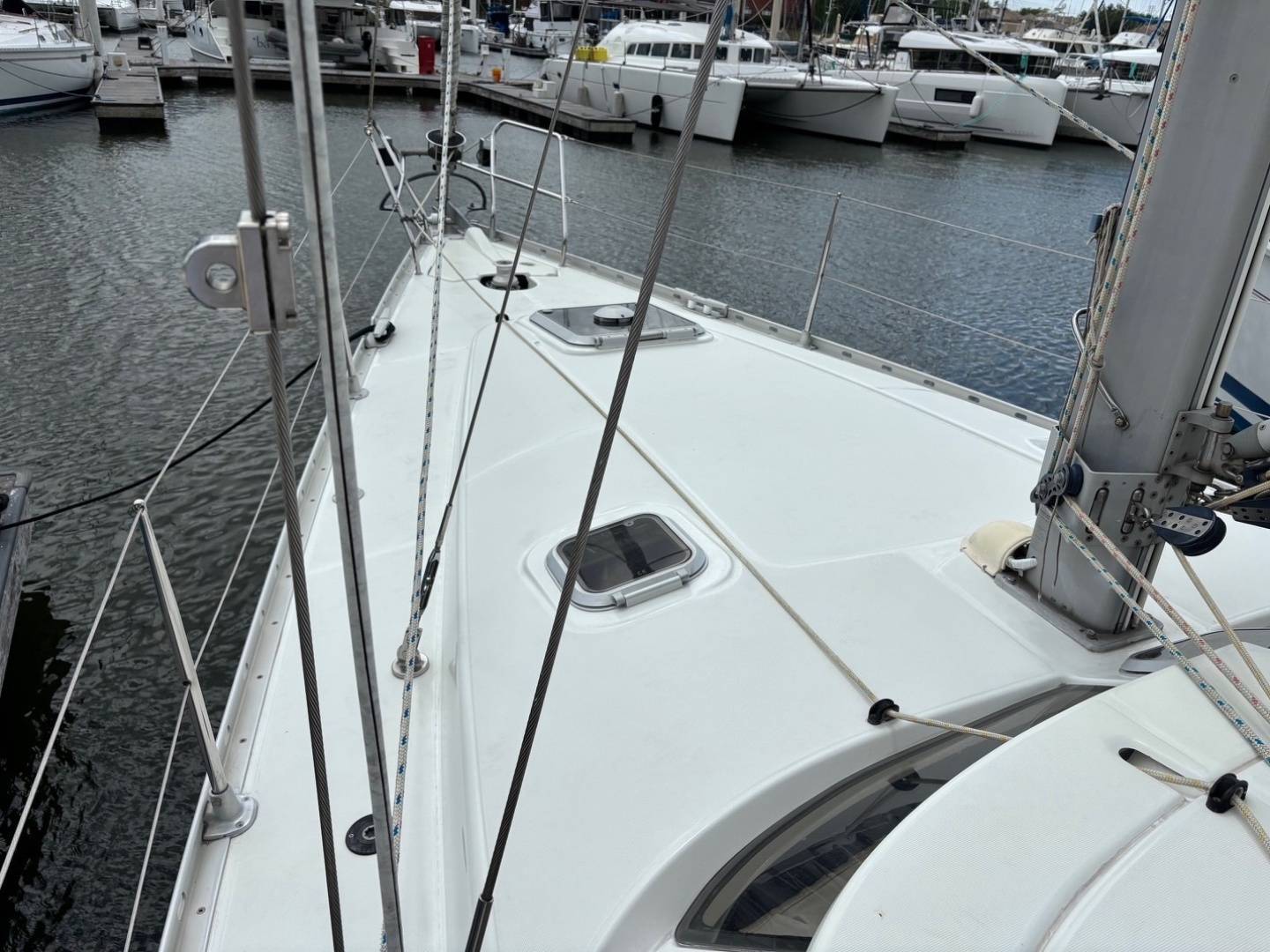 - Rigging: Sloop rigged with in-mast furling mainsail and roller furling genoa, designed for effortless short-handed sailing.
