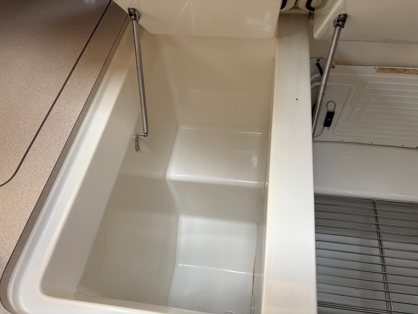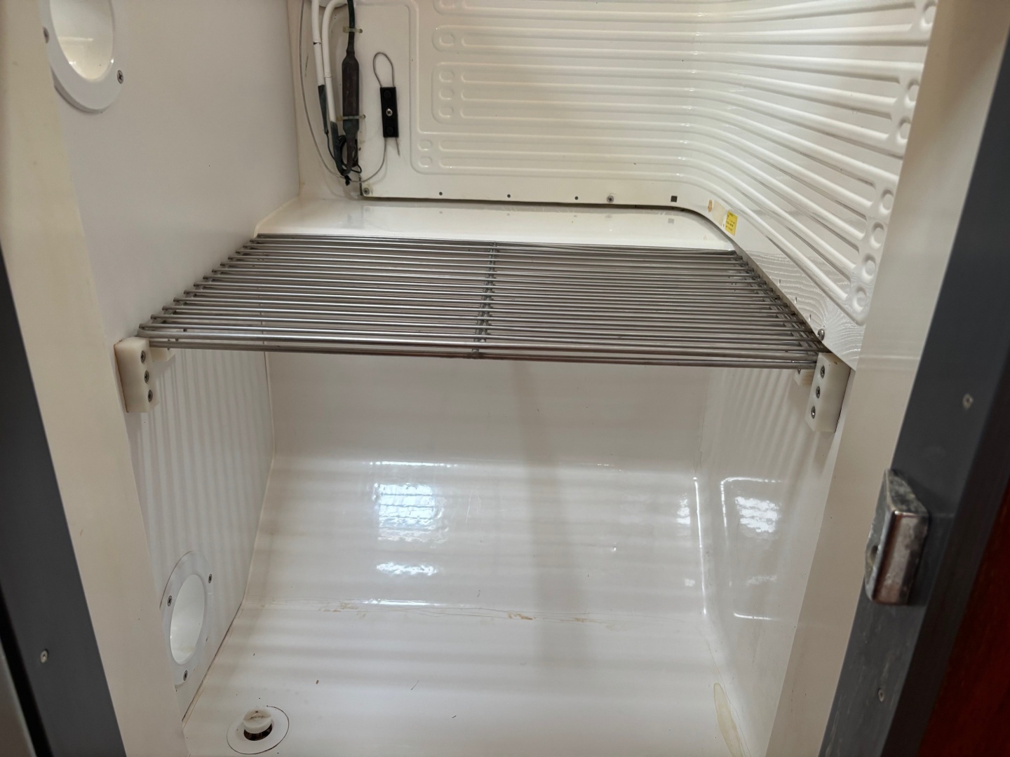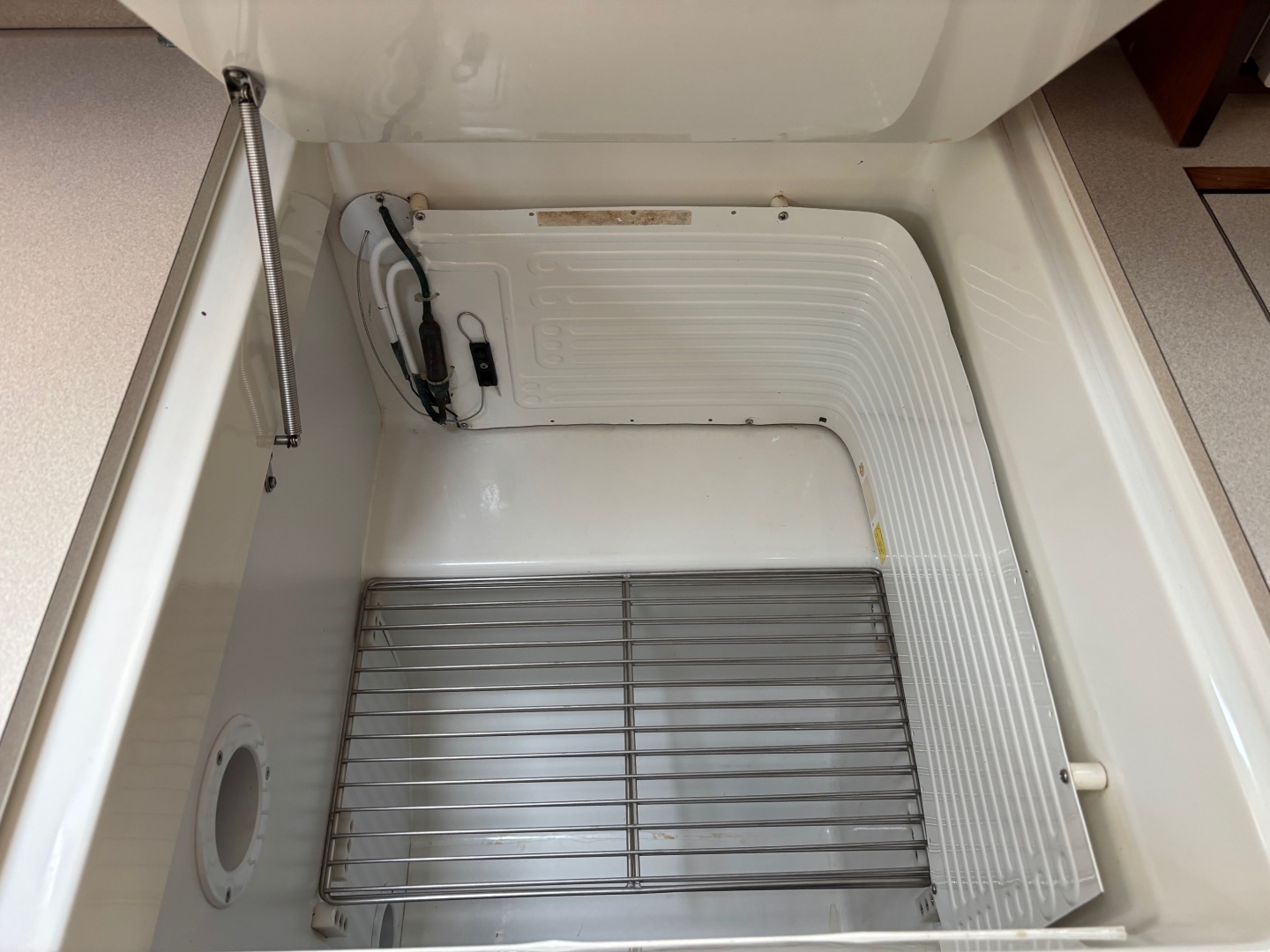 - Chef’s Galley: A large, L-shaped workspace featuring a double stainless steel sink, gimbaled stove/oven, and high-capacity refrigeration (180L) with a separate cooler.
