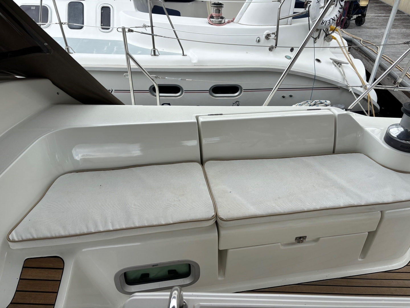 - Spacious Cockpit: Features a high-quality teak sole, a central folding table for alfresco dining, and a walk-through transom leading to an integrated swim platform with a hot/cold shower.
