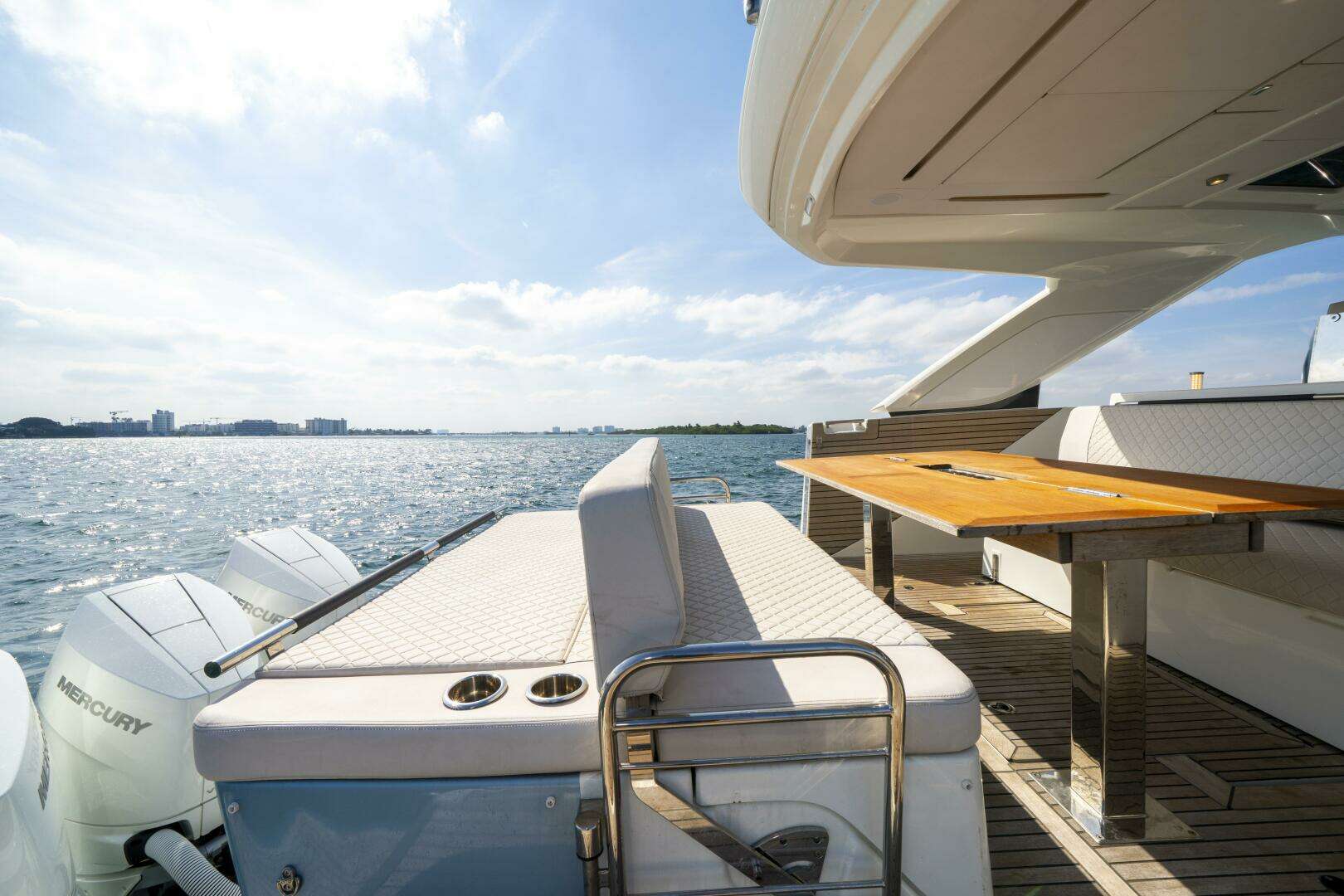 - Versatile layout with convertible seating, modular tables, sun pads, and an extended swim platform ideal for entertaining or lounging.