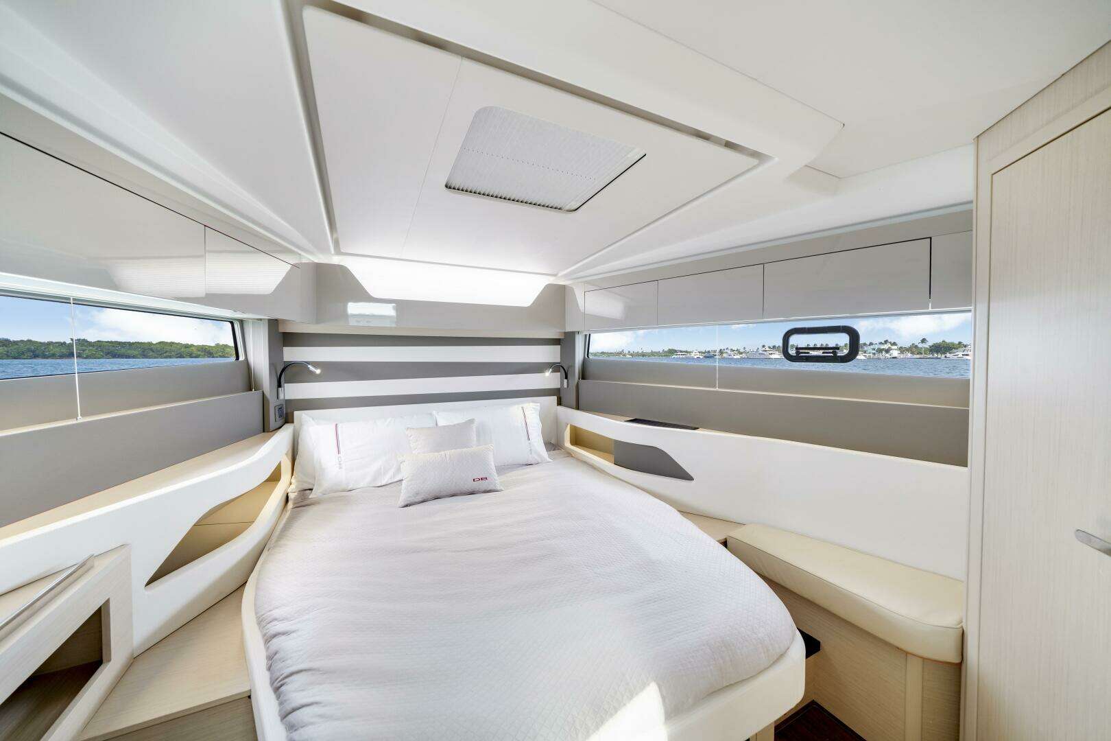 - Two luxurious cabins below deck, including a forward master stateroom with an island queen berth and a full beam VIP guest cabin offering comfort for overnight stays.