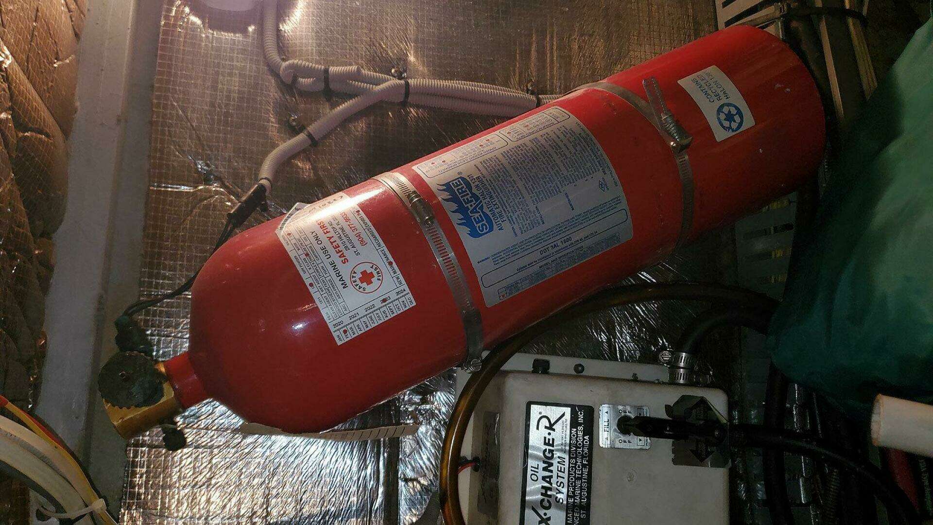- Fireboy engine room fire suppression system discharge alarm on the flybridge