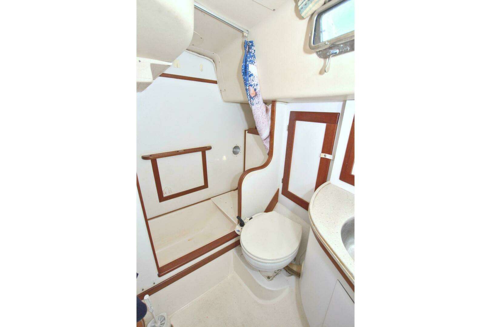 - Redesigned Master Suite – A spacious Full Island Berth and additional storage for extended cruising comfort. An opening port was added above the headboard when the stern was converted for improved ventilation.