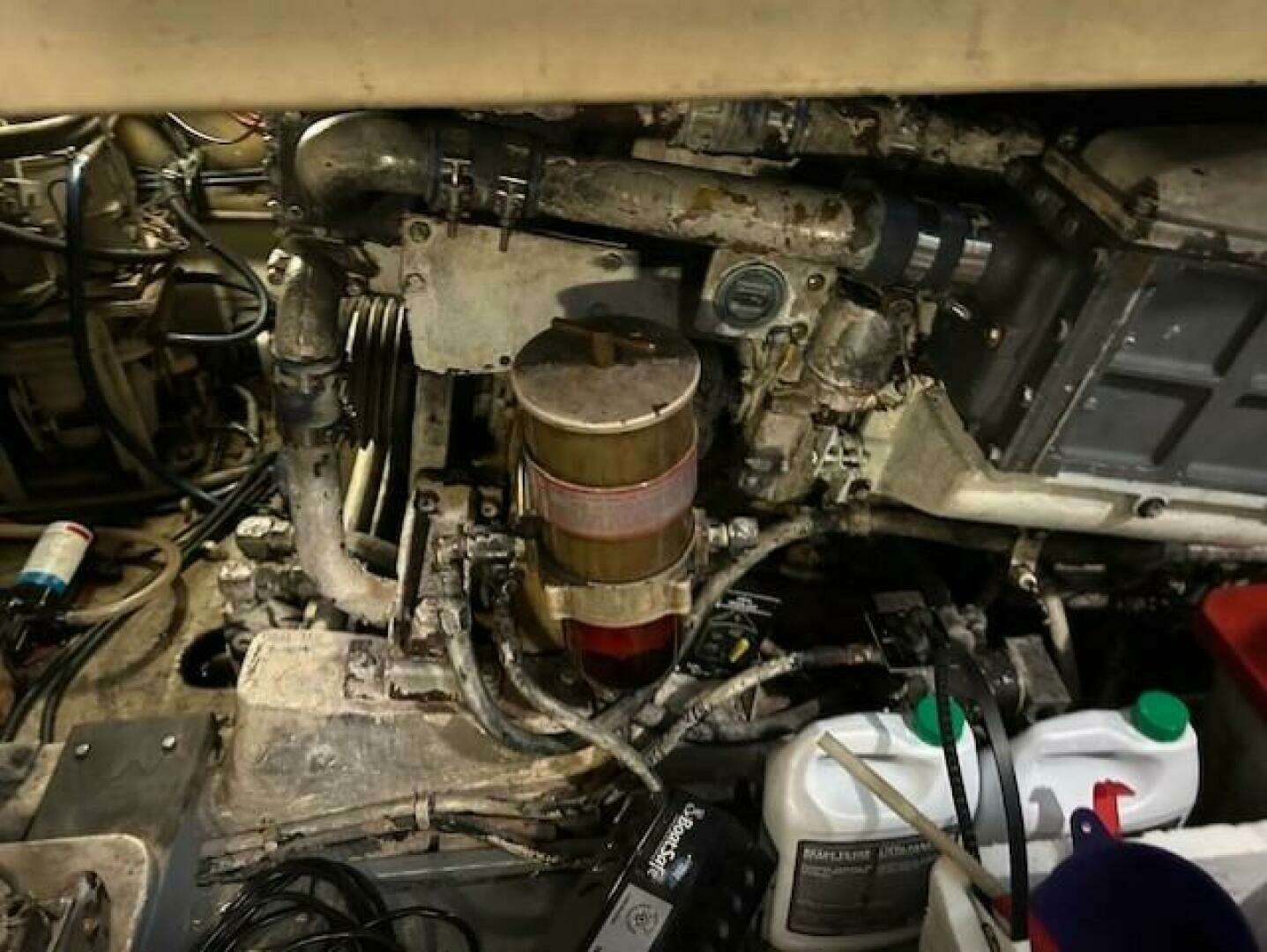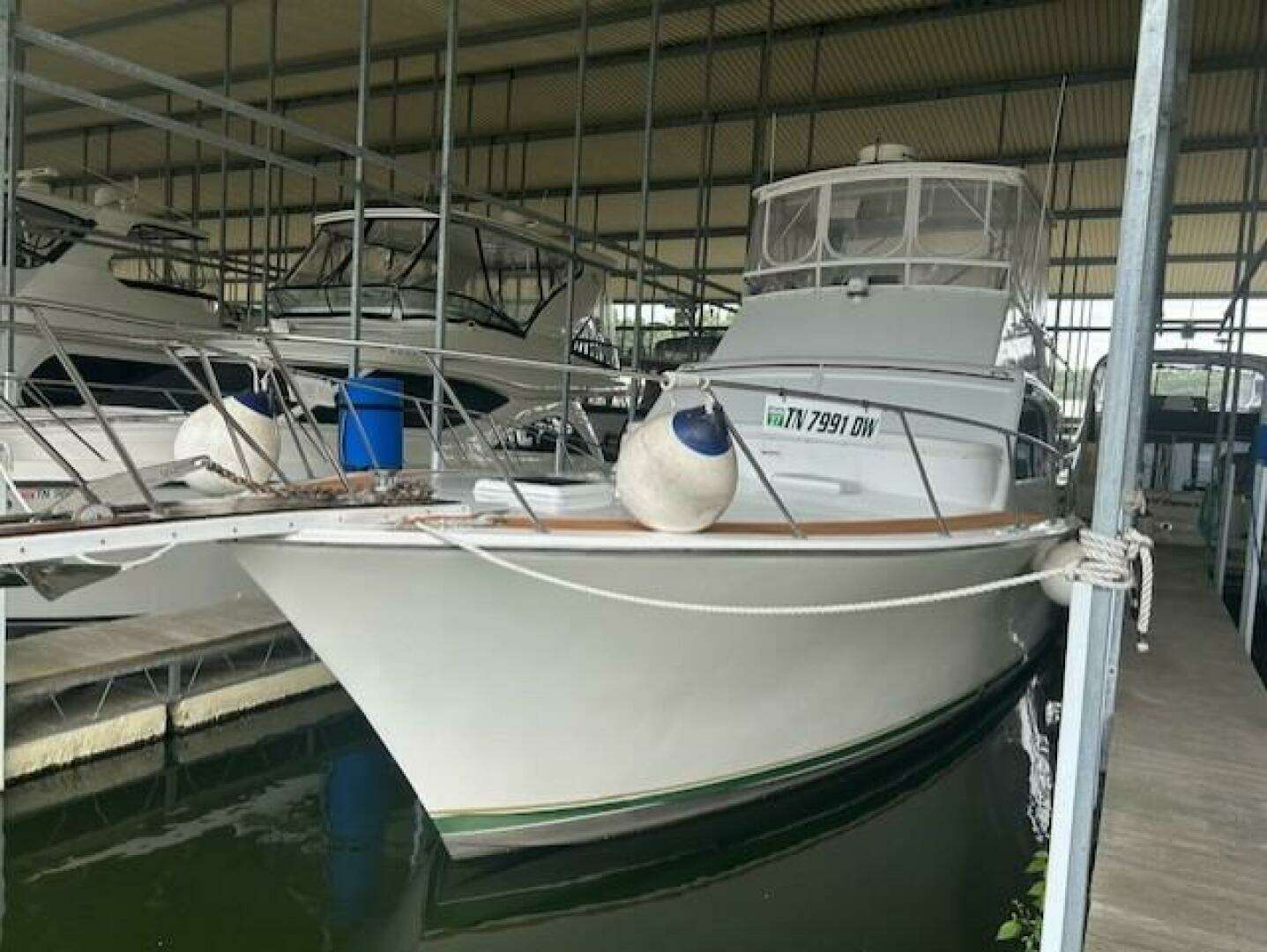 This is a Roomy Classic Sport Fisherman that has about 2320 hours on Twin Detroit Diesel 6-71TI Engines (450hp ea). It is equipped with Bimini Top; 2 Marine Heat/Air Units; Lectrasan Waste System; Two Staterooms with 1 Full Head; Clothes Dryer only; Teak Interior; Underwater Lights; VHF Radio; Garmin GPS; Salon TV; Cabin Stereo; Full Size Fridge, Microwave Oven; Cooktop; 8 KW Westerbeke Generator with 3367 hours; Canvas is in Good Condition; Bottom Painted in 2022.