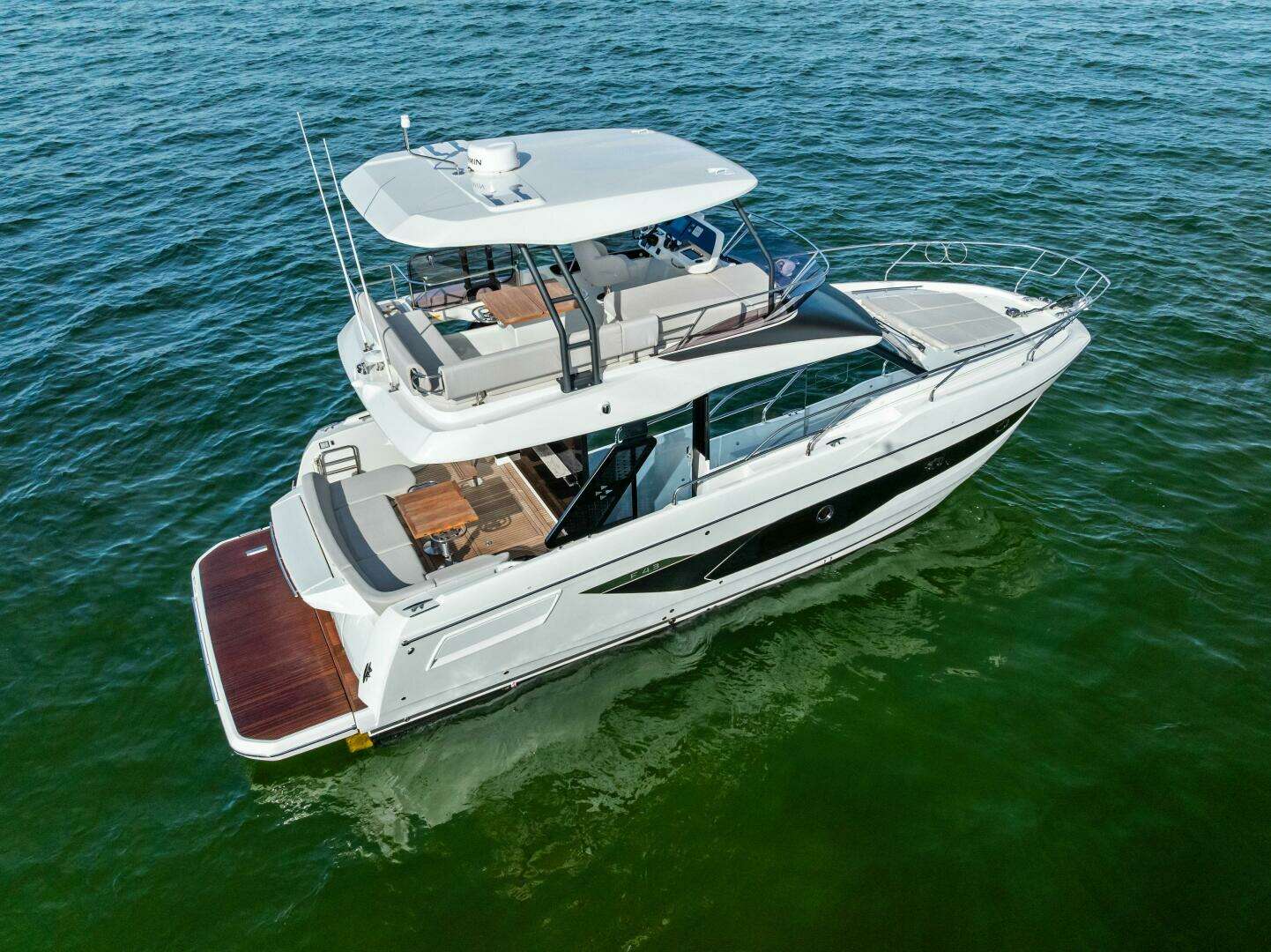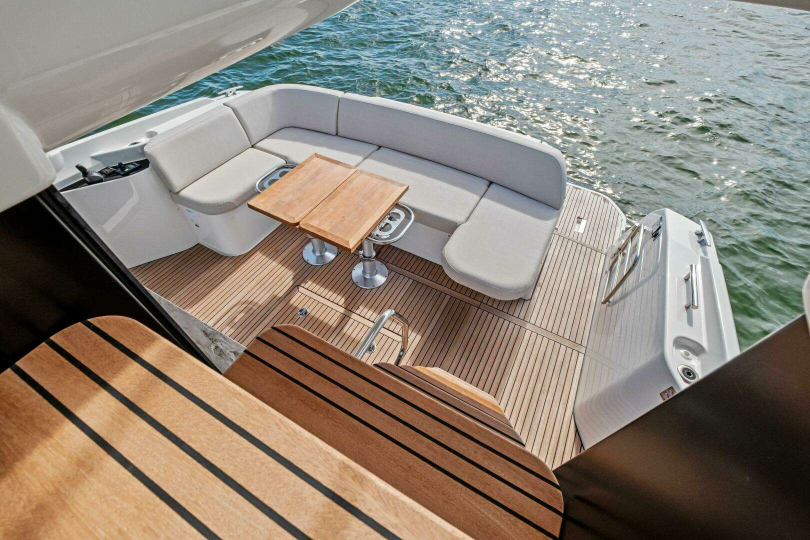 - Teak flooring in cockpit and on swim platform