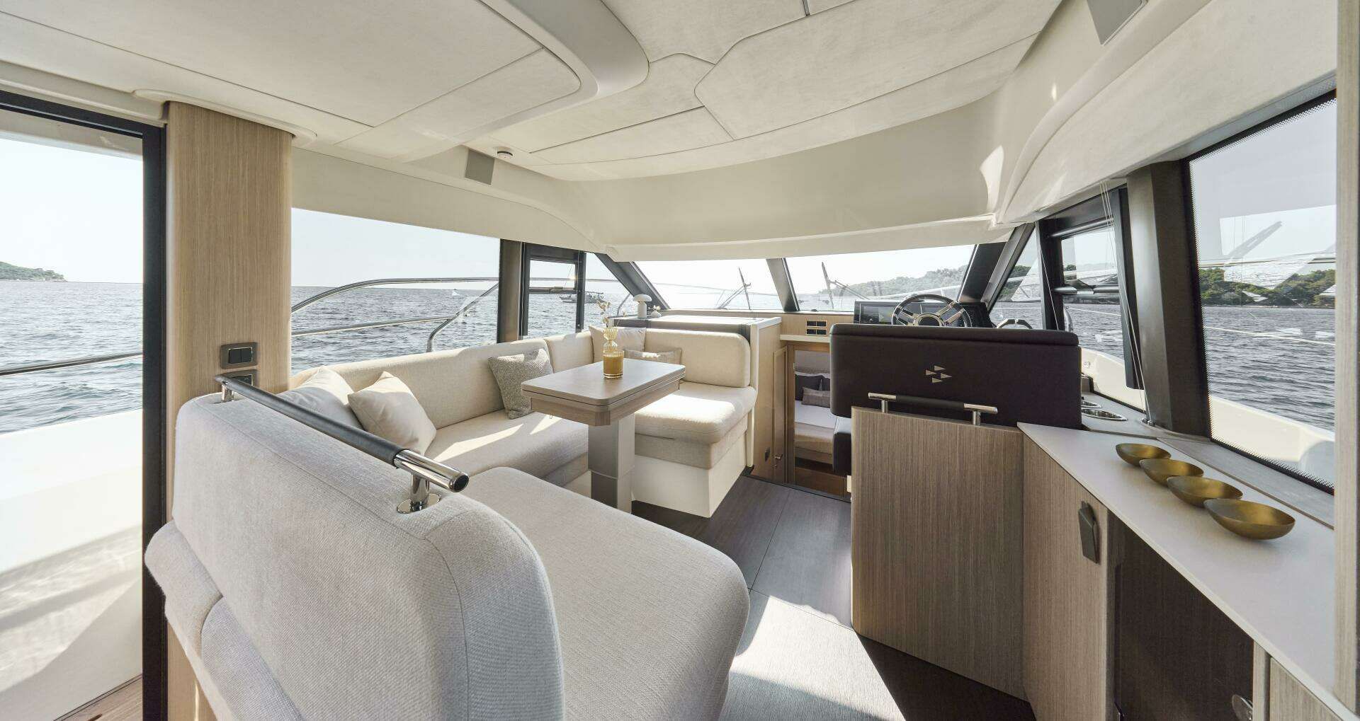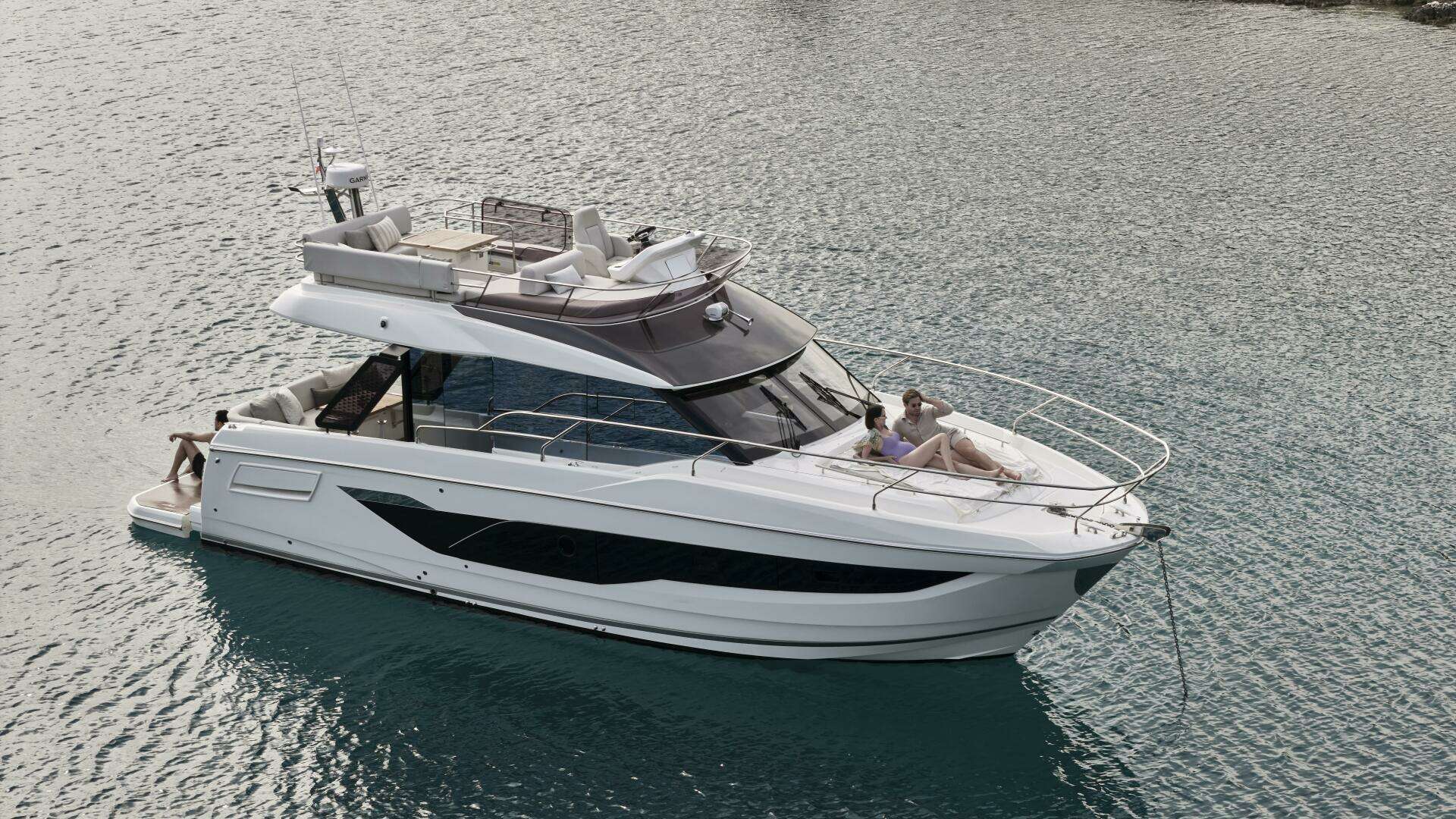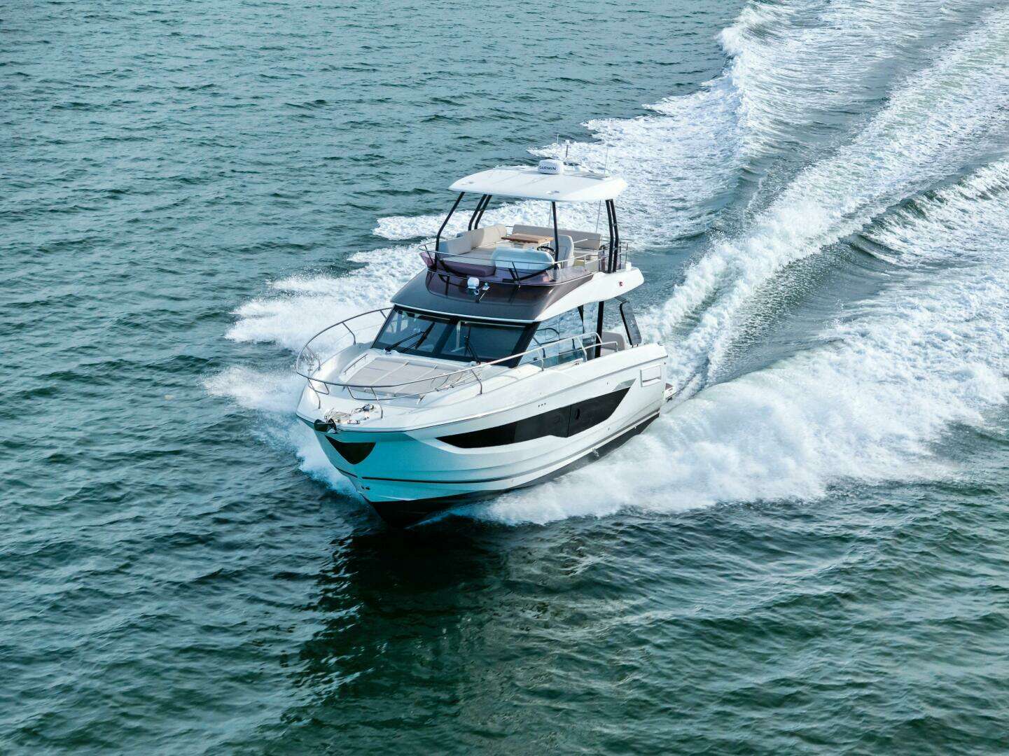 Designed to embrace the natural surroundings, it offers numerous opportunities for enjoyment, complemented by soft, refined details that create serene spaces for relaxation and privacy. Both the interior and exterior living areas exude an ambiance of luxury, security, and comfort. Crafted with bold innovation, this 43-foot model invites you aboard with the signature elegance and sophistication of the new F-Line generation.