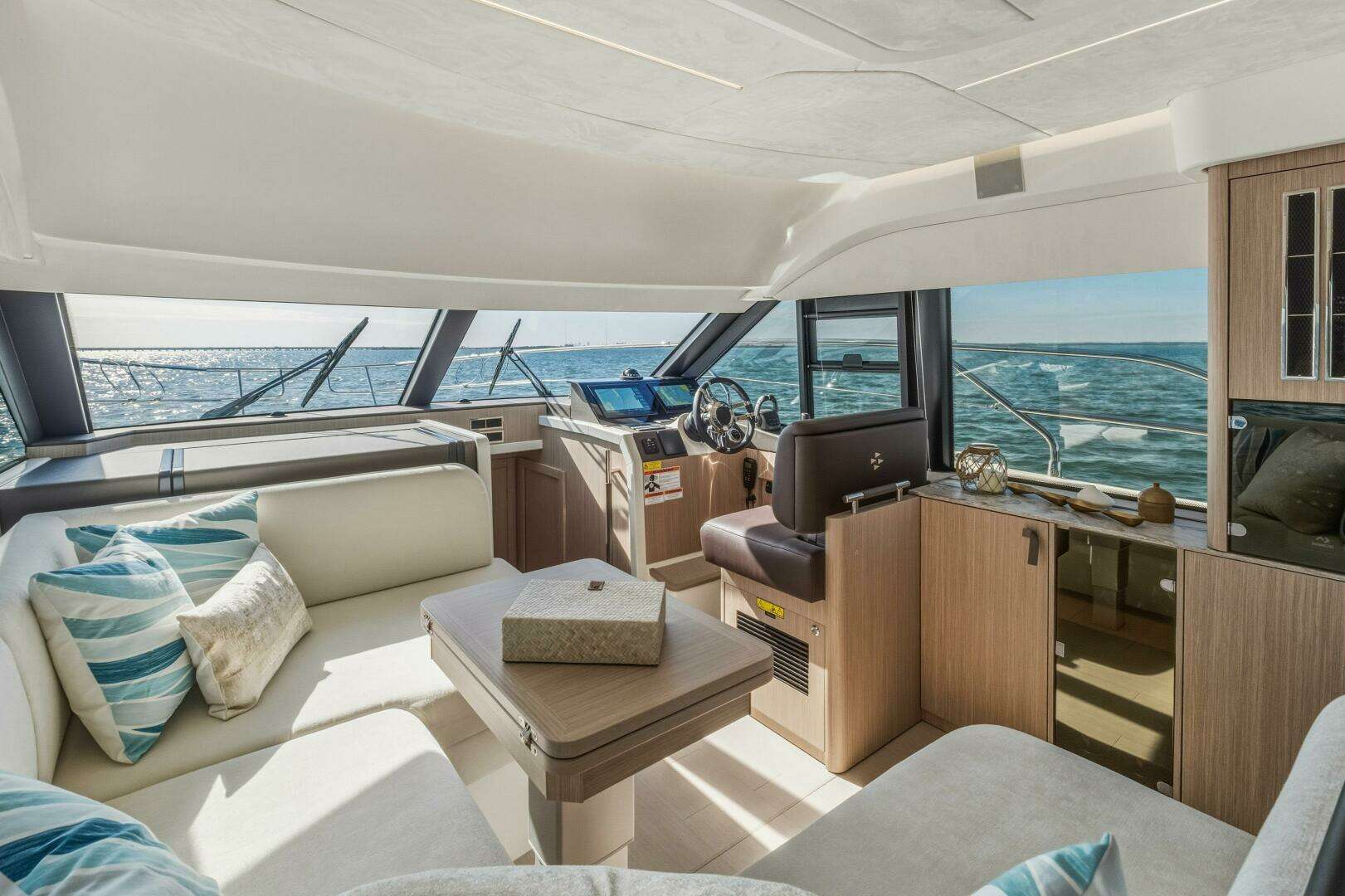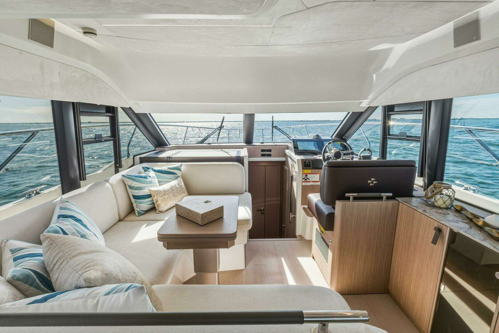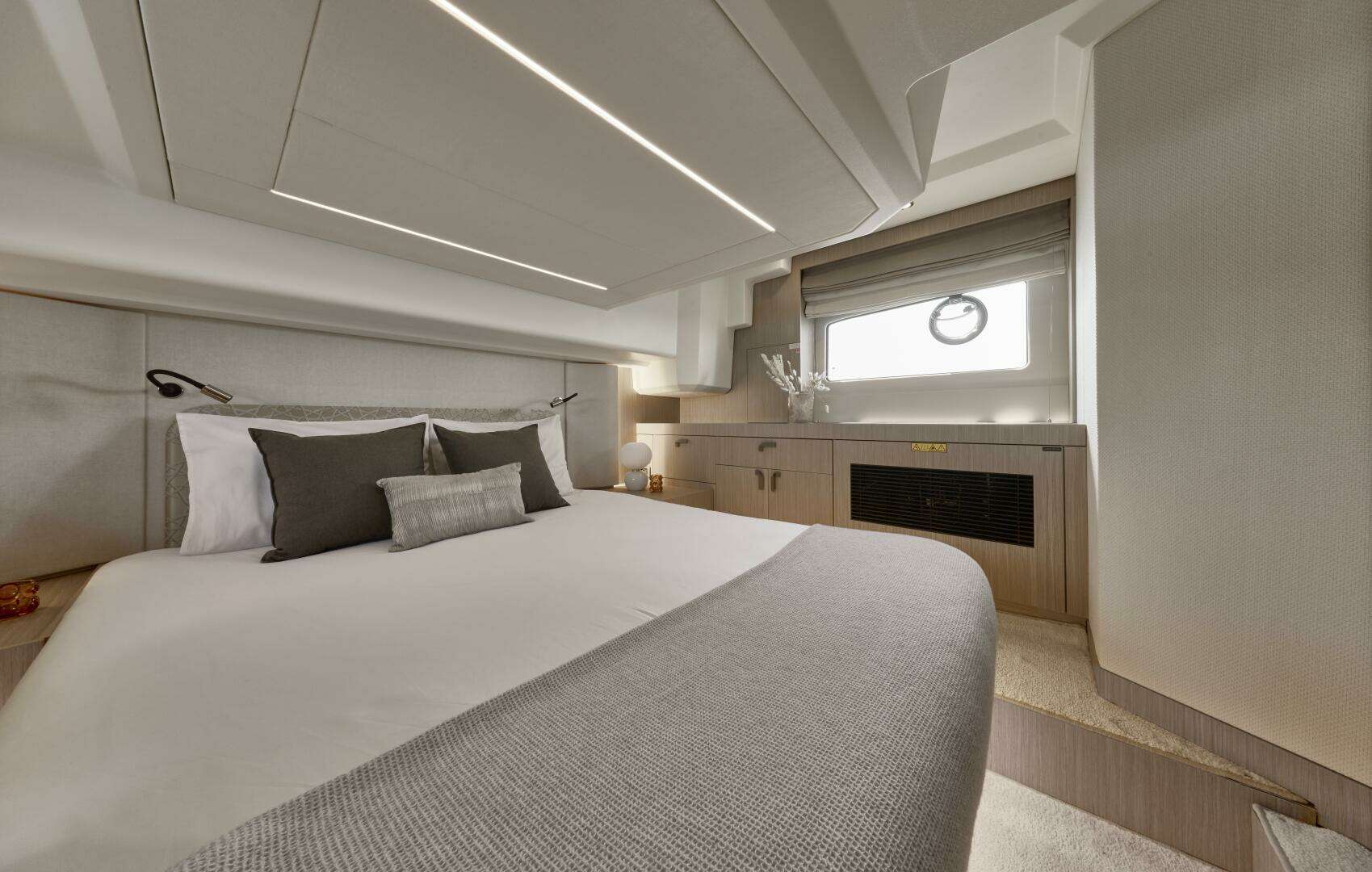 Designed to embrace the natural surroundings, it offers numerous opportunities for enjoyment, complemented by soft, refined details that create serene spaces for relaxation and privacy. Both the interior and exterior living areas exude an ambiance of luxury, security, and comfort. Crafted with bold innovation, this 43-foot model invites you aboard with the signature elegance and sophistication of the new F-Line generation.